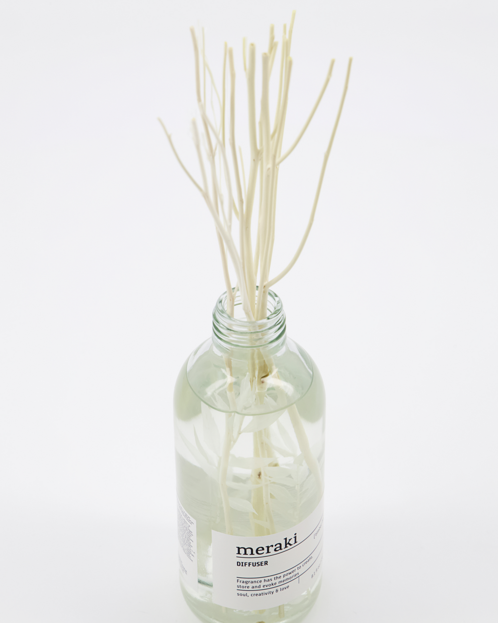 Med noter af grøn citrus og blomster såsom rose, storkenæb og jasmin skaber du en frisk og indbydende atmosfære i hjemmet. Som at træde ind i en blomstrende have. Duftpindene er lavet af rattan og absorberer væsken, så en dejlig, naturlig duft spreder sig i dit hjem. Den gennemsigtige flaske indeholder en dekorativ kvist af musetorn, som på harmonisk vis pryder dit badeværelse, din gang eller stue. Duftfriskeren holder i 4-6 måneder, afhængigt af hvor mange pinde, du bruger på en gang.