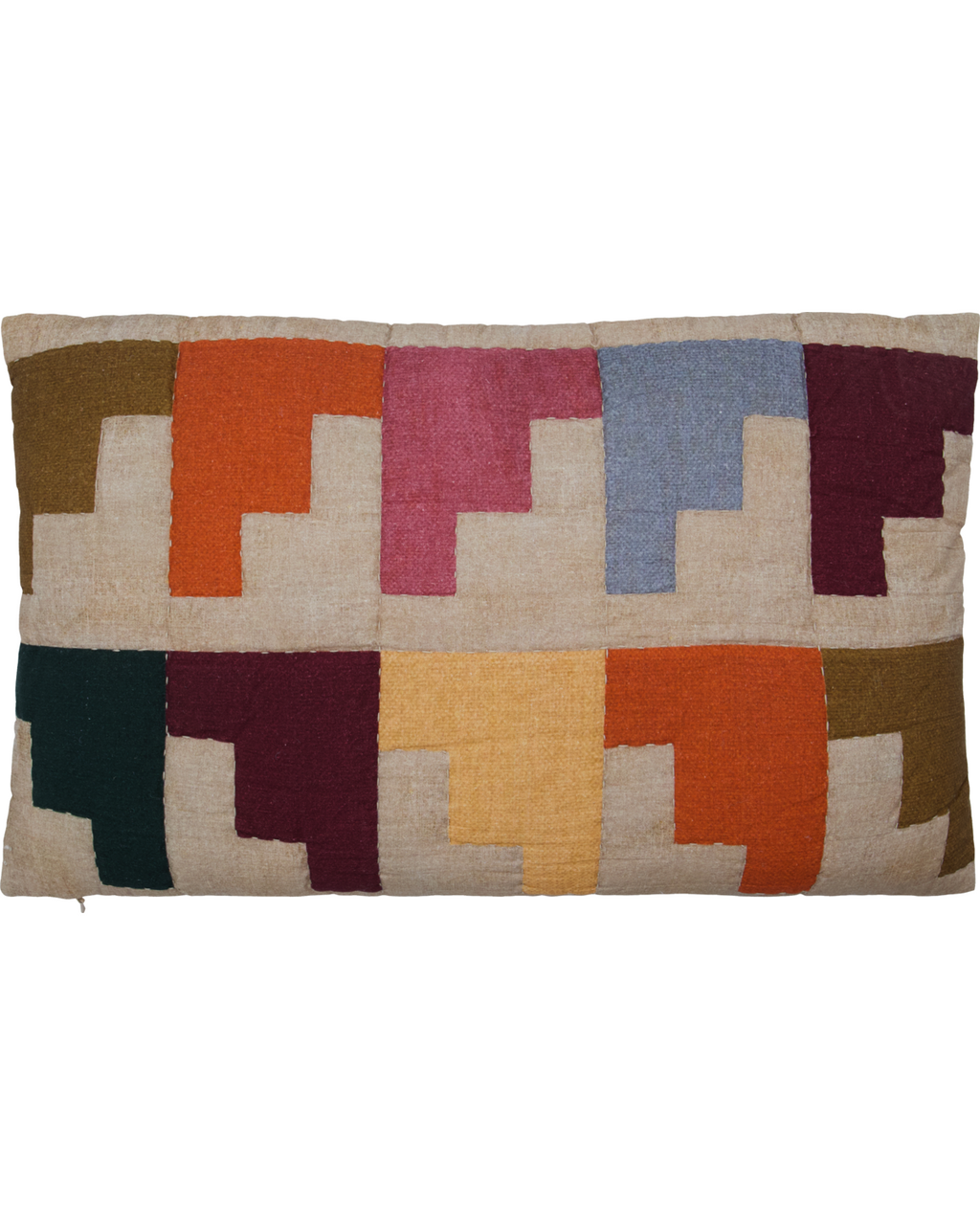 Et håndtrykt, grafisk mønster i levende farver gør dette pudebetræk til et blikfang i stue, soveværelse eller læsehjørne. De fine broderede detaljer på d ...