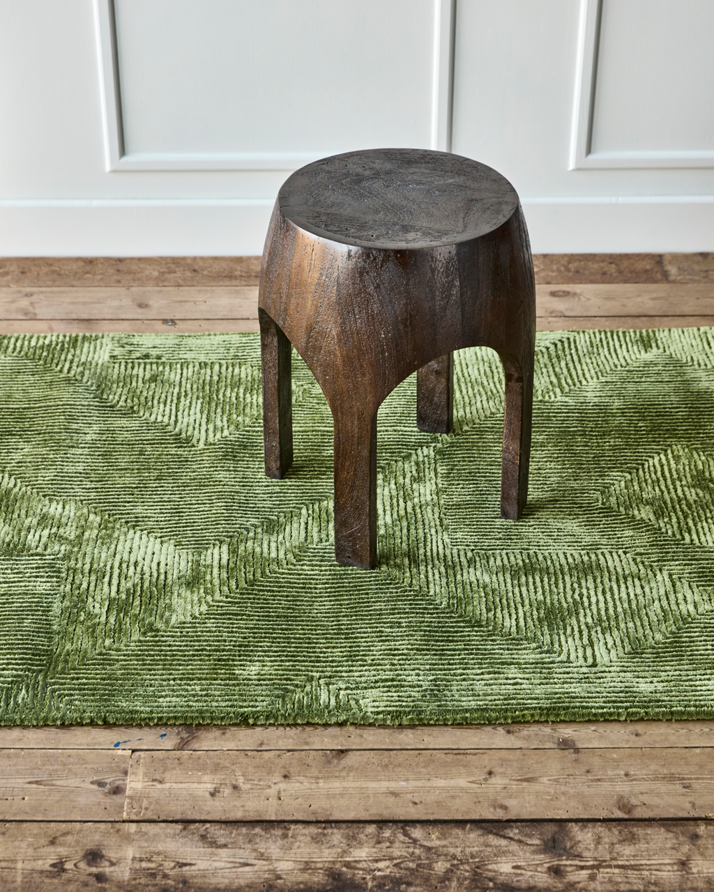 Forvandl dit hjem med et håndvævet, glansfuldt tæppe i en smuk grøn nuance