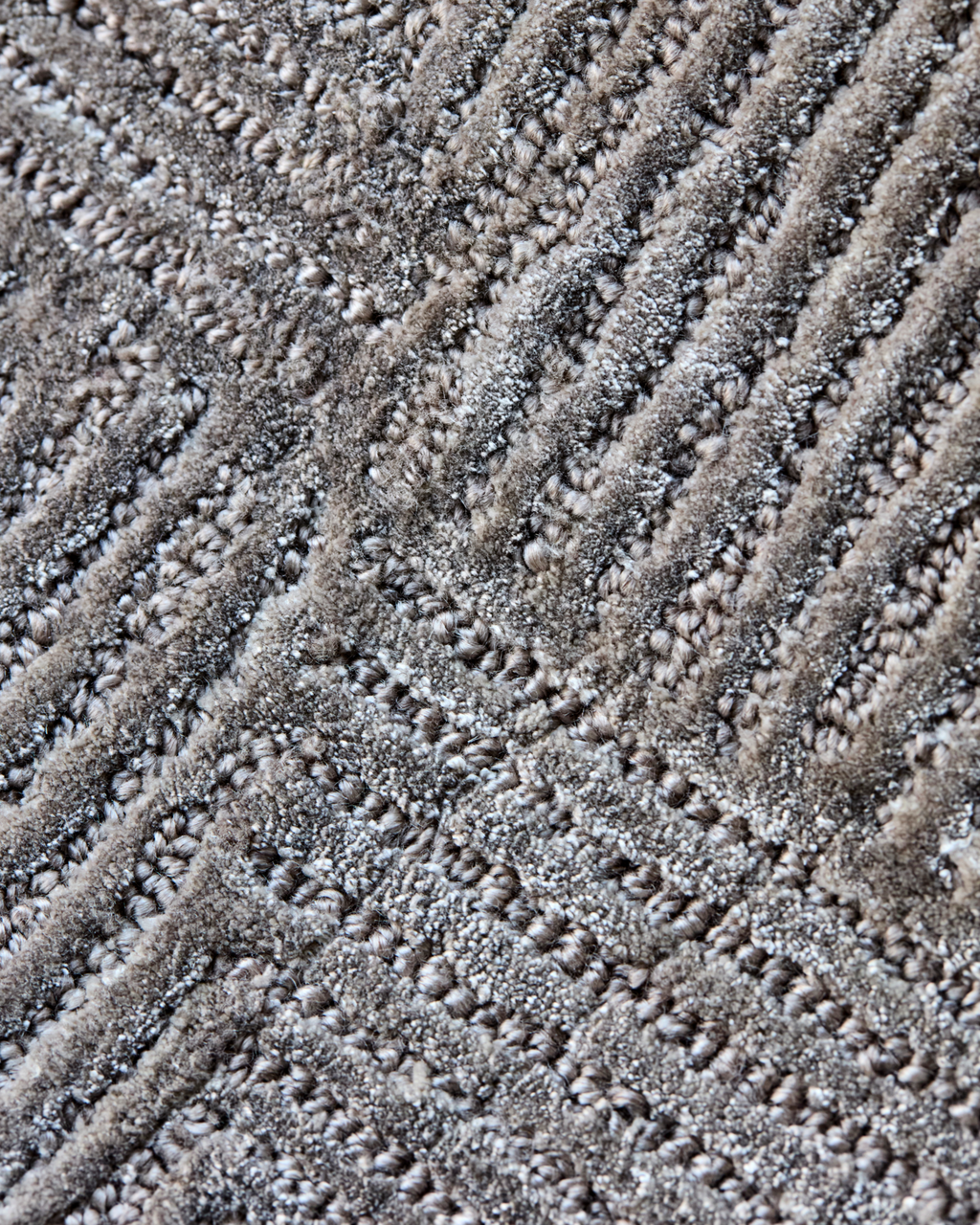 Blødt tæppe i sandfarvet viskose løfter straks stemningen i din entré, din stue eller dit soveværelse. Det grafiske mønster og glansfulde overflade skabe ...
