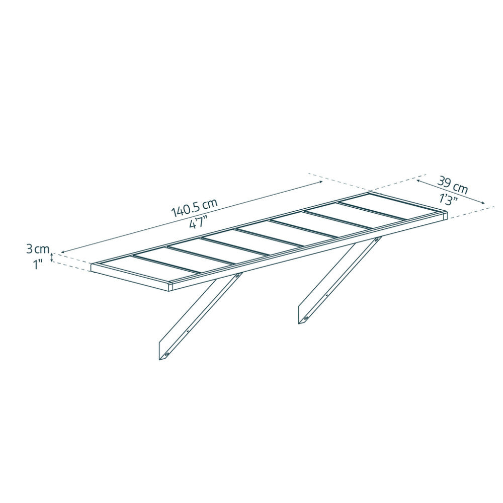 Hylden er designet specifikt til Canopia Natura-serien og kan bære op til 30 kg jævnt fordelt. Den monteres nemt direkte på drivhusets ramme – alt nødvendigt monteringsudstyr medfølger.