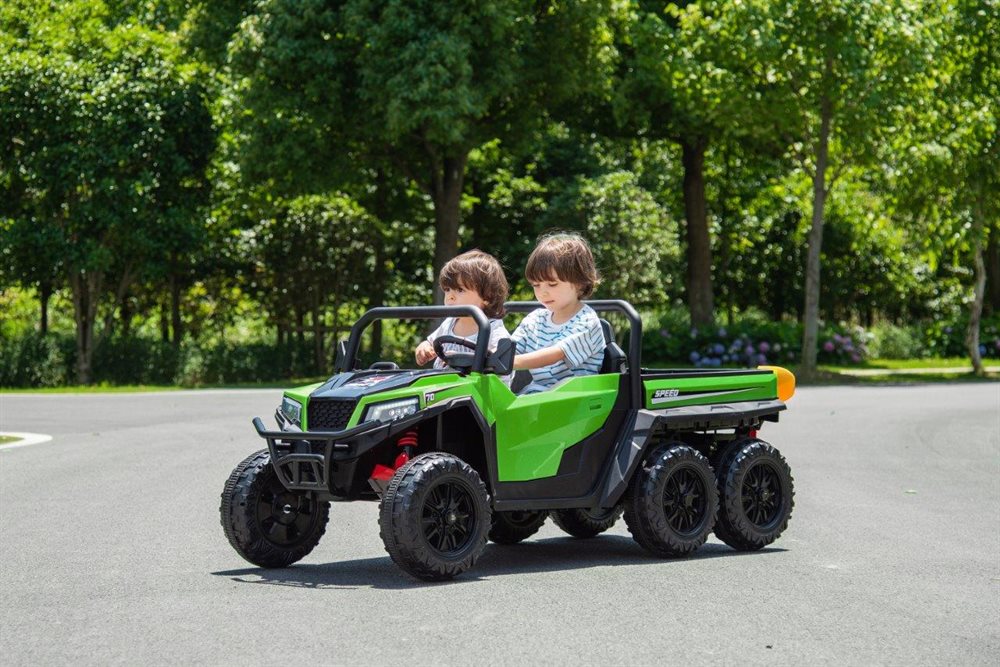 Denne store elbil er udstyret med 4 kraftfulde 24V/45W motorer, der giver godt træk på alle hjul og en jævn kørsel, selv på ujævnt underlag. Med to sæder, lædersæder og robuste gummihjul er den perfekt til fælles ture i haven eller på grusveje.