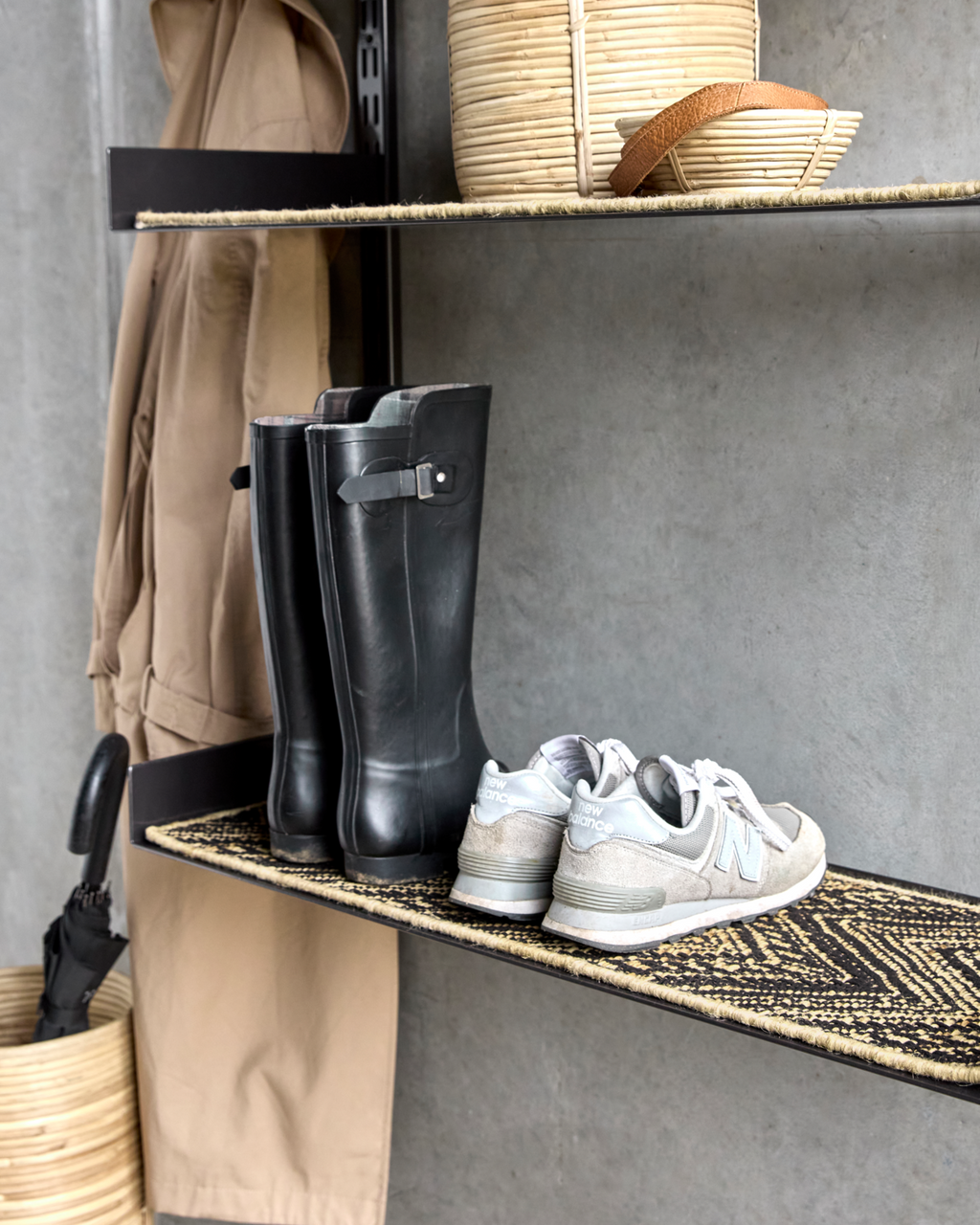 Giv dit reolsystem et varmt og moderne præg med denne håndvævede måtte