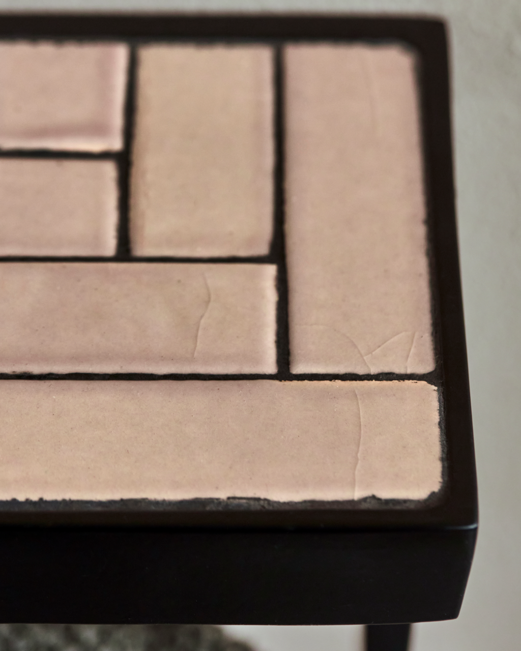 Oplev blandingen af unikt håndværk og funktionalitet med denne håndlavede keramiske hylde