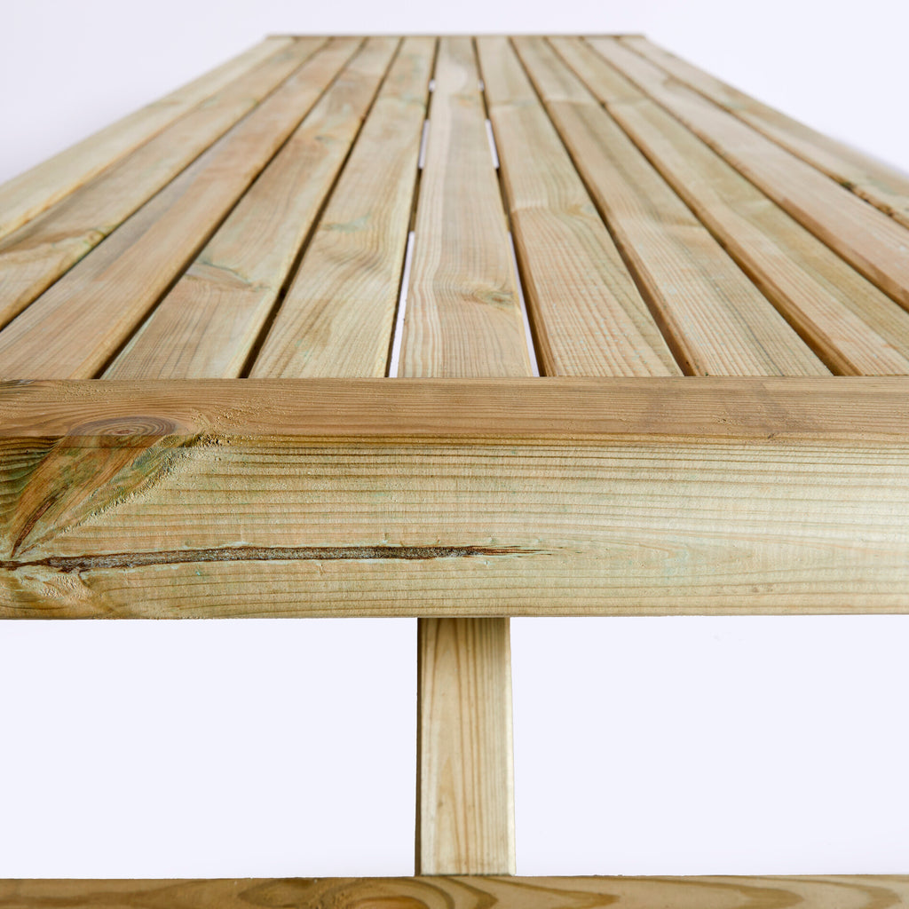 Fremstillet af 100% FSC-certificeret europæisk fyrretræ garanterer dette sæt både kvalitet og ansvarlig skovdrift. De praktiske vippebænke gør det let at beskytte sæderne mod vejret, samtidig med at de sikrer en fleksibel og pladsbesparende løsning.