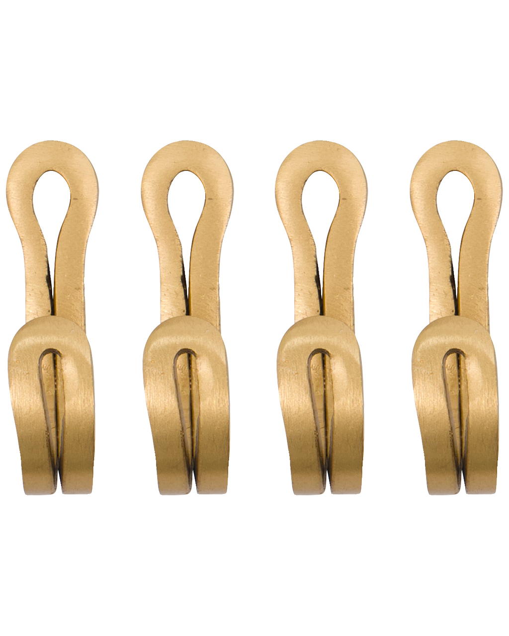 Rustikke kroge i et enkelt look. Denne pakke med fire kroge fra House Doctor tilfører den lille detalje, som du har brug for, når du gerne vil gøre dit hjem lidt flottere og samtidig vil skabe mere opbevaringsplads. De er lavet af jern, har en messingoverflade, passer til enhver indretningsstil og tilfører varme, charme og elegance til hjemmet. Brug krogene i entreen, i soveværelset eller på badeværelset. De er perfekte til at holde styr på overtøj, tasker og andet tilbehør. Farve: Messingfinish Mål: L x B1,5 x H5 x D2,5 cm Vægt: 140g Produkt oprindelsesland: India