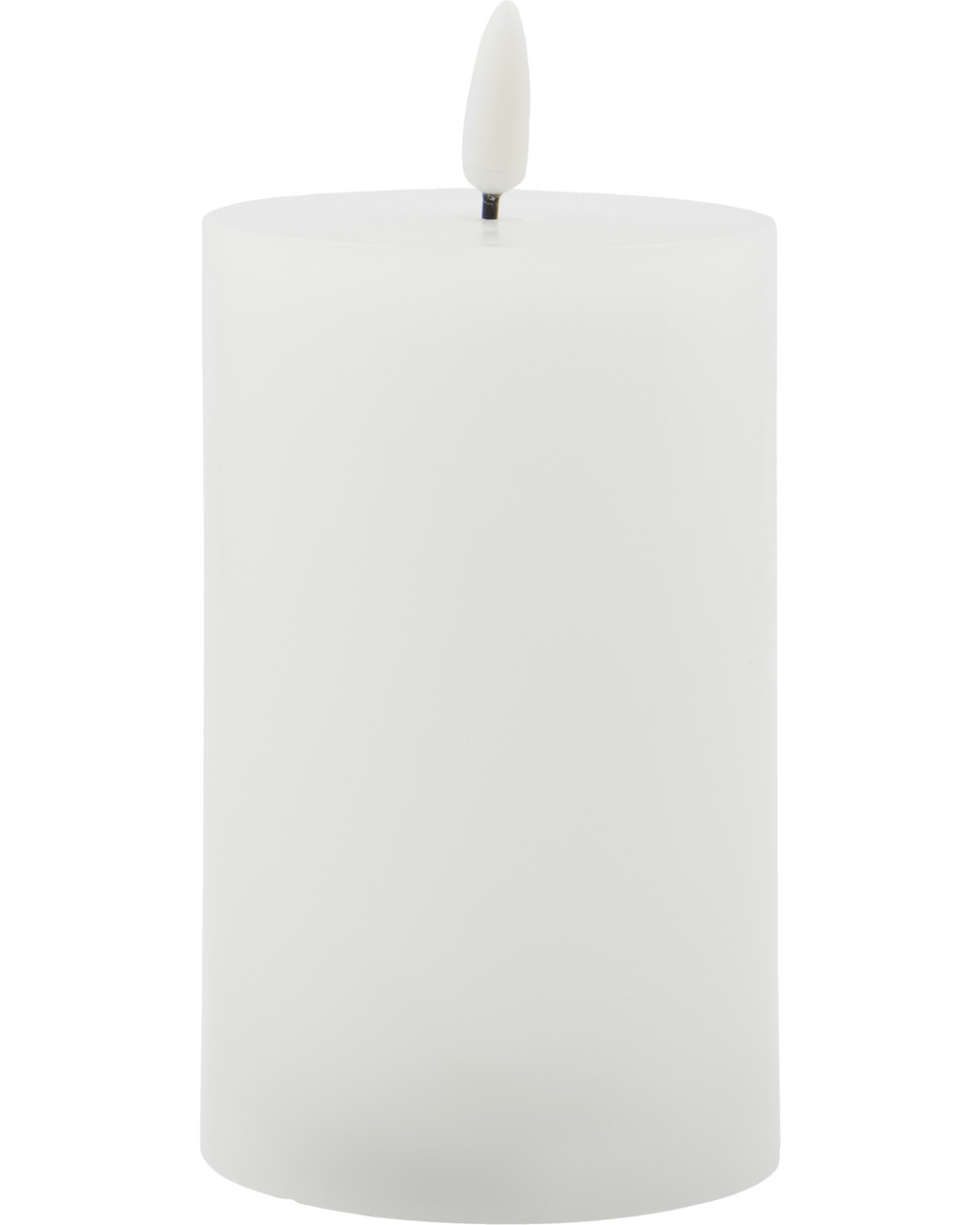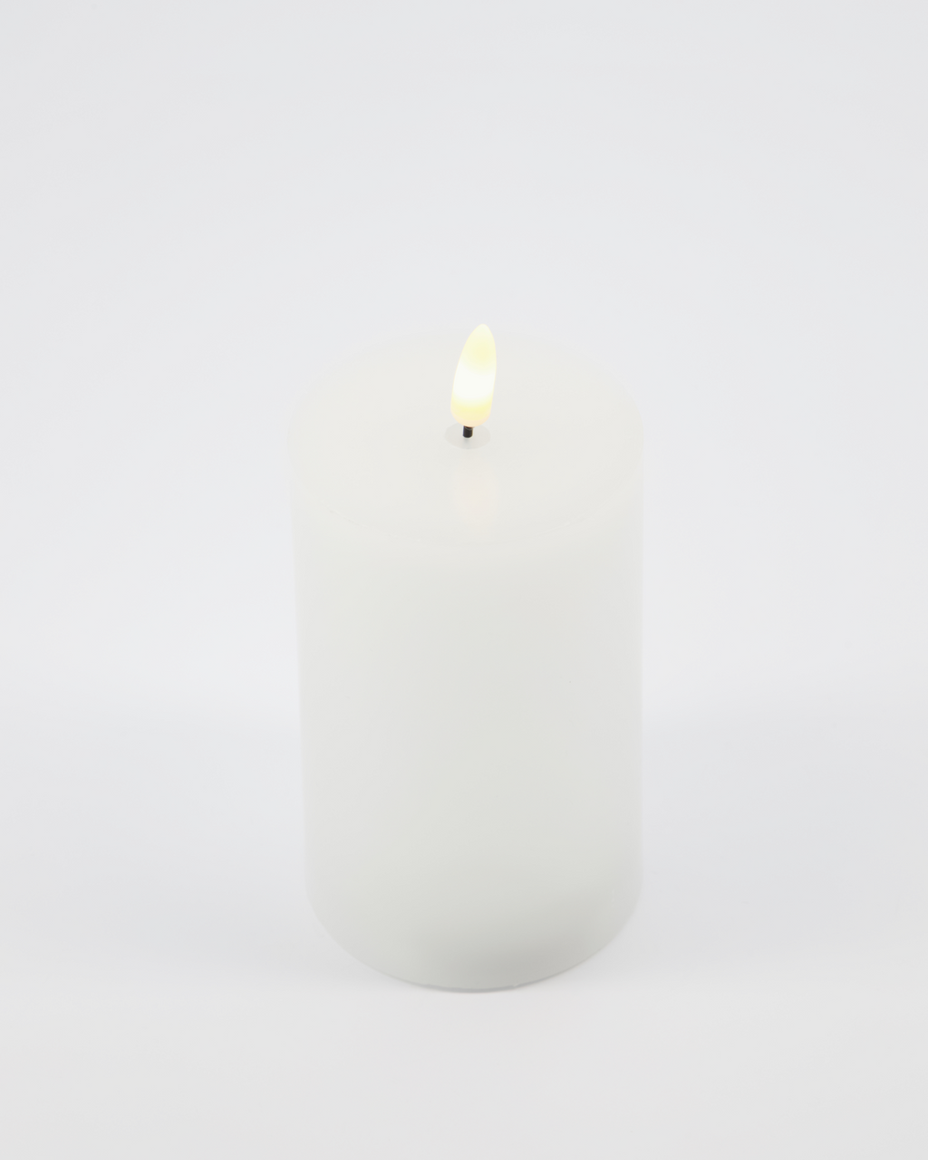 Dette hvide, mellemstore LED-bloklys fra House Doctor er et smukt alternativ til stearinlys. Hvis du vil nyde dine lanterner uden varme, røg og levende lys, så brug dette LED-lys. Det er en god løsning for familier, og ligner et ægte lys med voksoverflade og en varm, flimrende glød. Hvis du glemmer at slukke lyset, vil det automatisk slukke efter fem timer. Anvender 2 AA batterier (medfølger ikke). Farve: Hvid Mål: L x B x H12,5 x D cm Vægt: 190g Produkt oprindelsesland: China
