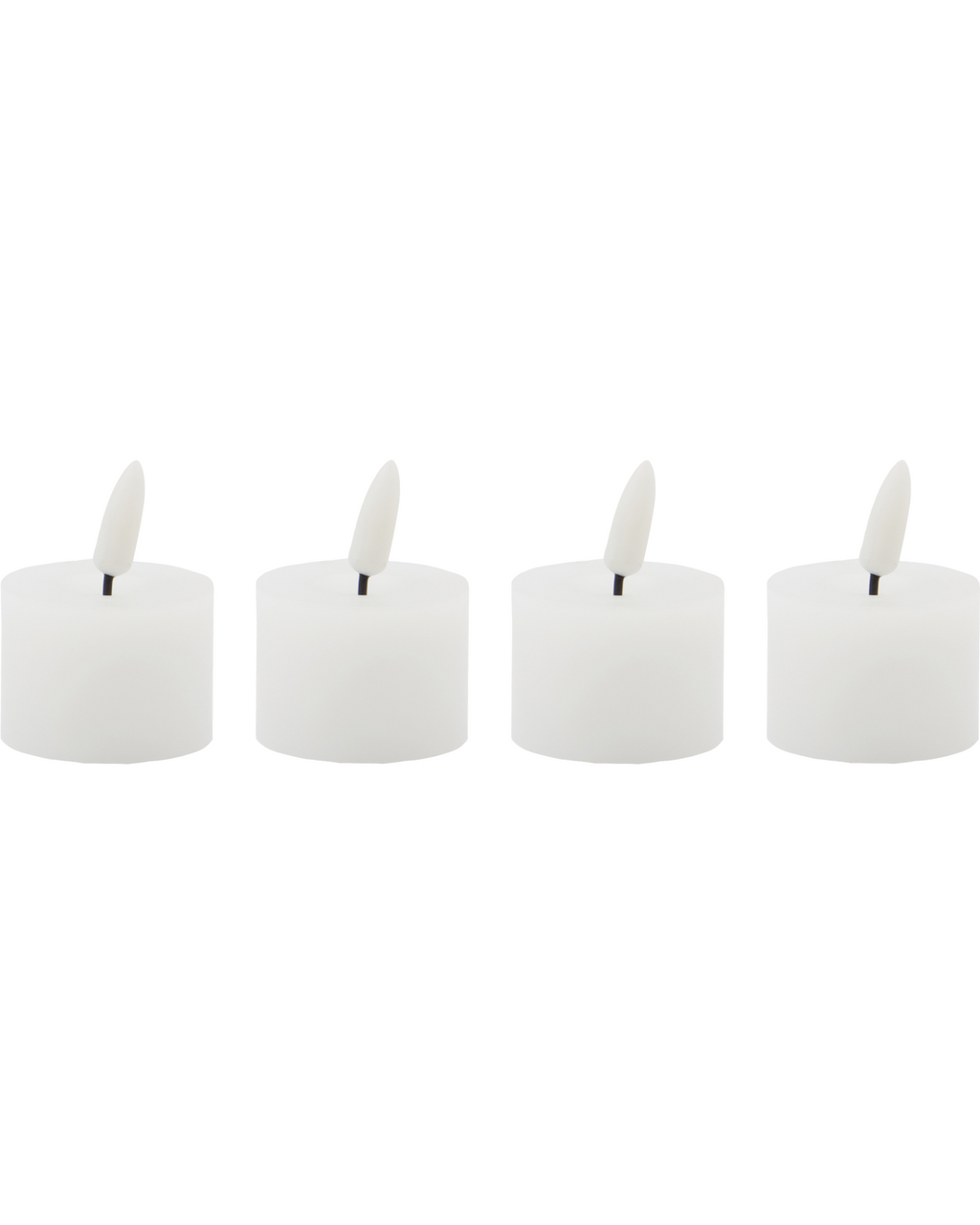 Dette sæt med 4 LED-fyrfadslys fra House Doctor er et fantastisk alternativ til traditionelle fyrfadslys. Hvis du ønsker sjæl og charme i dit hjem, men uden sod og os, så kan du bruge LED-lys i stedet. Familier elsker LED-fyrfadslys, da det giver den samme hyggelige stemning, uden du skal bekymre dig, om børnene brænder sig, eller om du har husket at slukke det. Fyrfadslyset kommer nemlig med en praktisk timer, som lader det være tændt i fem timer, hvorefter det slukker af sig selv. Nyd en hyggelig aften under tæppet med et realistisk og varmt, blafrende lys med en voksagtig overflade. Anvender CR2032 batteri til hvert lys. Batterier medfølger ikke. Farve: Hvid Mål: L x B x H6 x D cm Vægt: 140g Produkt oprindelsesland: China