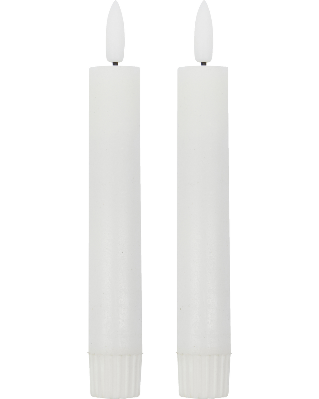 Vil du gerne opnå den intime atmosfære, man får med levende lys, men uden de medfølgende bekymringer? Dette sæt fra House Doctor består af 2 hvide lys, der bevæger sig på en måde, der minder om levende lys, og de ligner stearin, så du ikke behøver gå på kompromis med udseendet. Den praktiske timerfunktion gør desuden, at de er tændt i 5 timer, så du kan nyde din aften uden at skulle huske at tænde og slukke dem. Brug lysene i din yndlingslysestage til afslappede middagsselskaber, til fester, eller simpelthen til at skabe helt særlige øjeblikke. Især i de mørke vintermåneder. Farve: Hvid Mål: L x B x H16 x D cm Vægt: 80g Produkt oprindelsesland: China