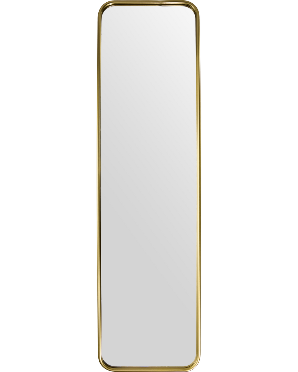 Med dette aflange spejl i gylden ramme skaber du en elegant og sofistikeret stemning i dit hjem. Den minimalistiske form med bløde, afrundede hjørner sætter et moderne præg på enhver indretning, mens den gyldne finish reflekterer lyset smukt og giver rummet dybde og karakter.- Elegant gylden finish- Minimalistisk, tidløst design- Skaber visuel dybde- Perfekt til alle rumHæng det i entréen, soveværelset eller stuen, og lad spejlet blive et stilfuldt samlingspunkt, der er både funktionelt og dekorativt. Farve: Gylden Mål: L x B35 x H129 x D2 cm Vægt: 6220g Produkt oprindelsesland: China