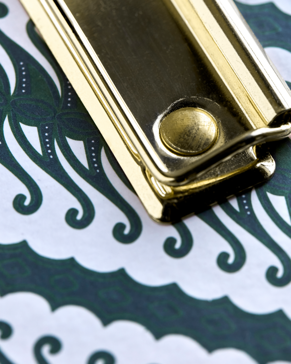 Dette sæt med to clipboards er designet med et vintagemønster og tilbyder både funktionalitet og charme. De robuste guldjernsklemmer holder dine papirer, breve og postkort sikkert på plads og giver dit arbejdsområde et elegant præg. Disse clipboards er perfekte til at håndtere dine daglige dokumenter, samtidig med at de fungerer som dekorative elementer, der forbedrer indretningen af dit hjemmekontor.