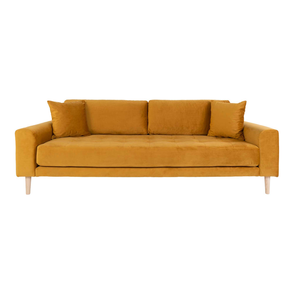 Lido 3 Personers Sofa i sennepsgult velour med to puder HN1004