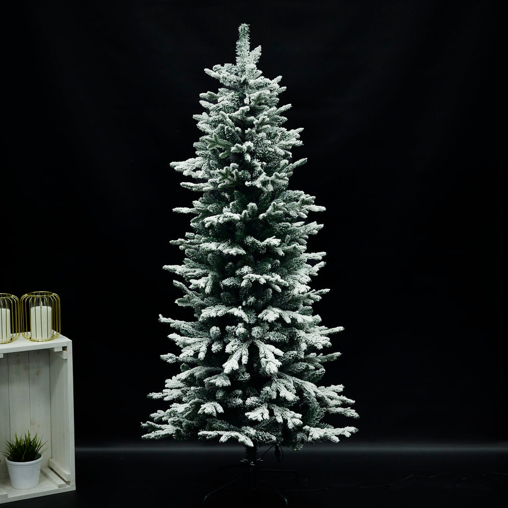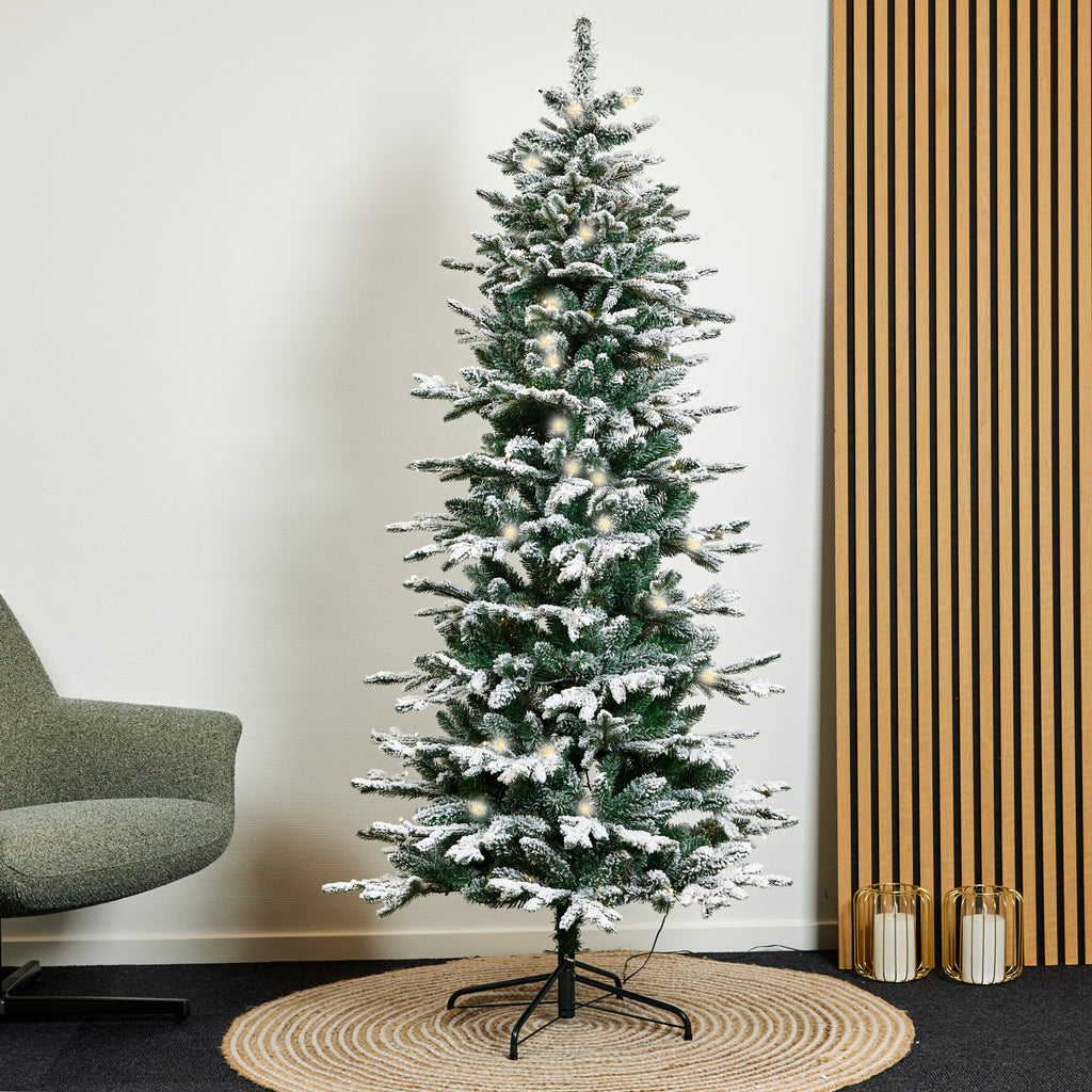 Nordic Winter - Juletræ kunstigt smalt PE/PVC m/sne, klasse A, 180 x 86 cm m/lys