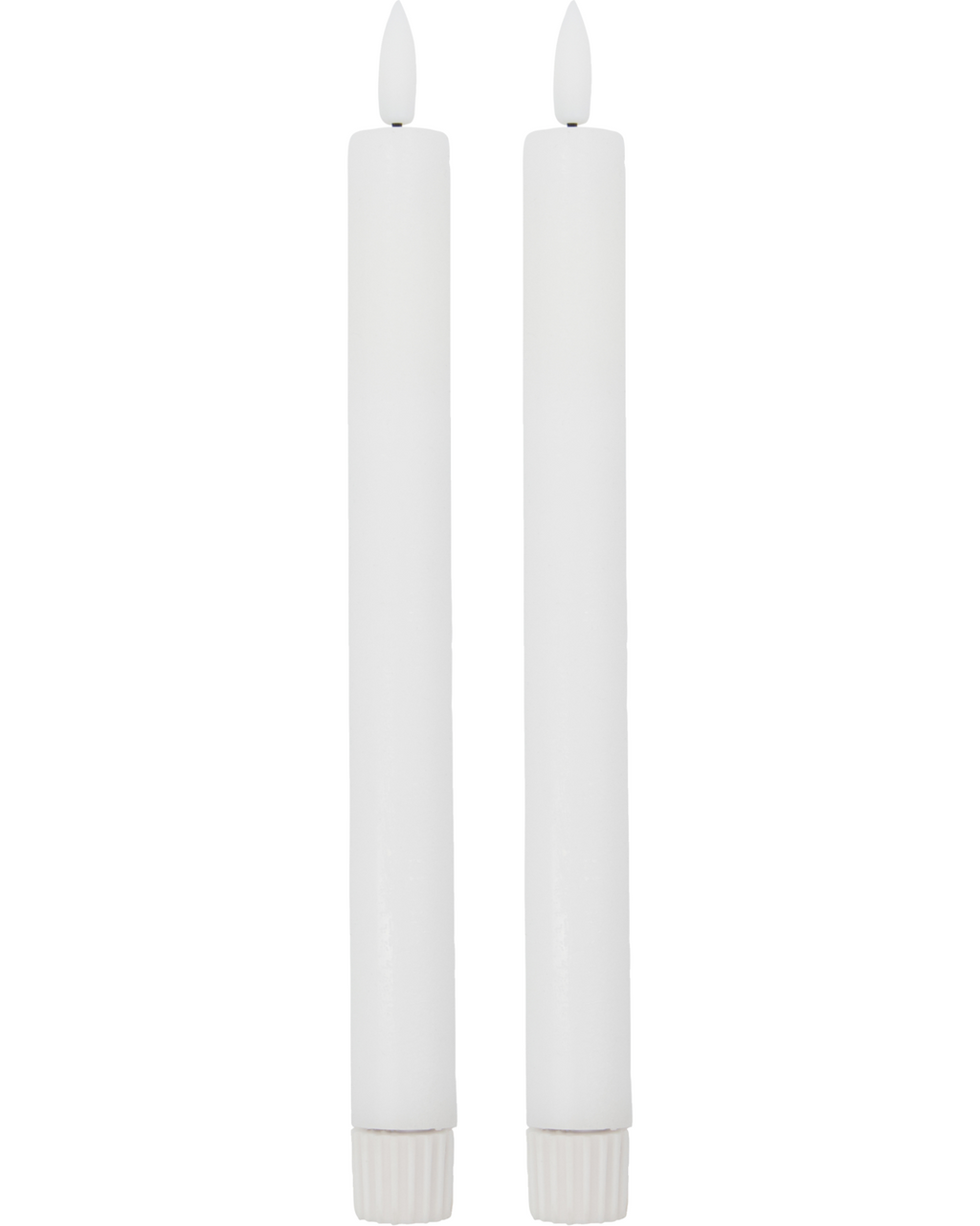 Med dette sæt bestående af 2 LED-lys fra House Doctor er du klar til hyggelige aftener, hvor du ikke behøver bekymre dig om åben ild. De hvide lys bevæger sig på en måde, der minder om levende lys, og de ligner stearin, så du ikke behøver gå på kompromis med udseendet. Den praktiske timerfunktion gør desuden, at de er tændt i 5 timer, så du kan nyde din aften uden at skulle huske at tænde og slukke dem. Brug lysene i din yndlingslysestage til afslappede middagsselskaber, til fester, eller simpelthen til at skabe helt særlige øjeblikke. Især i de mørke vintermåneder.
