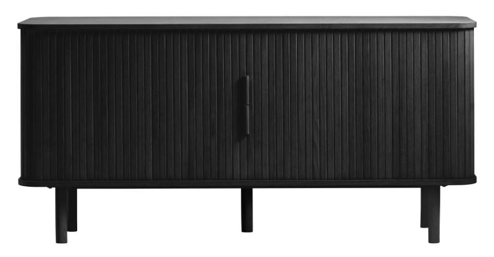 Denne skænk er perfekt til dig, der værdsætter kvalitet, funktionalitet og tidløst design. Den sorte egetræsfinish med diskret glans skaber et elegant, moderne udtryk, mens de praktiske skydelåger med sort stof giver en minimalistisk æstetik.