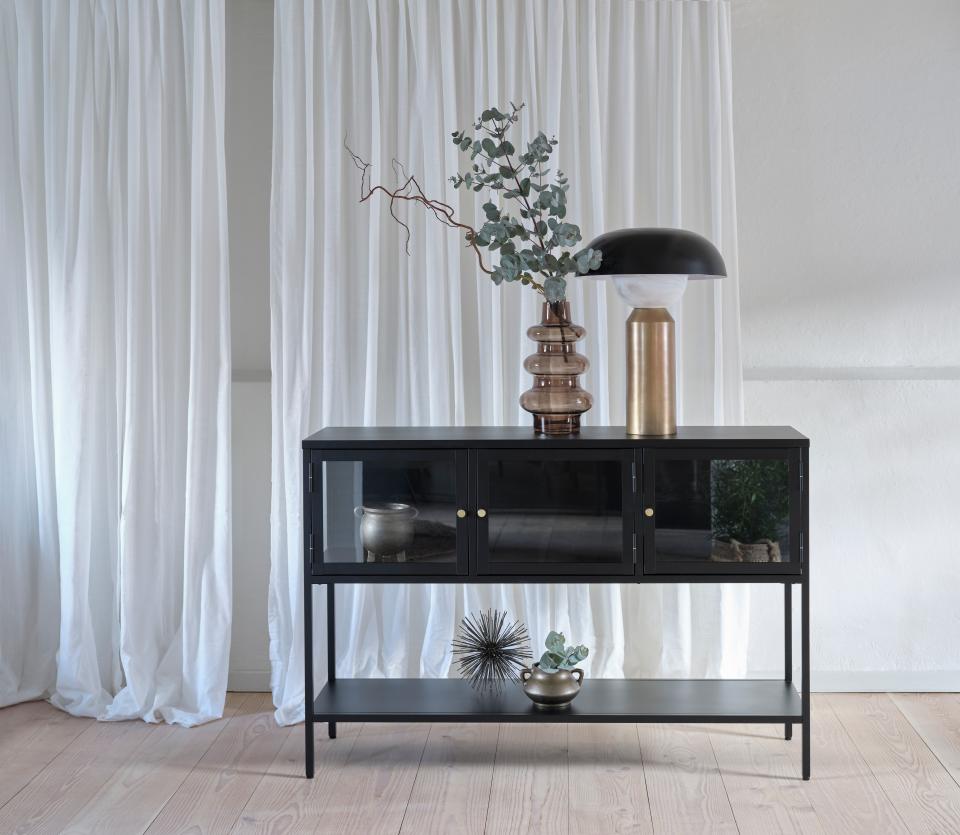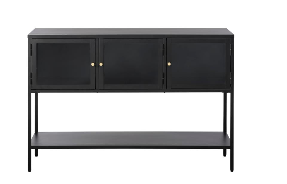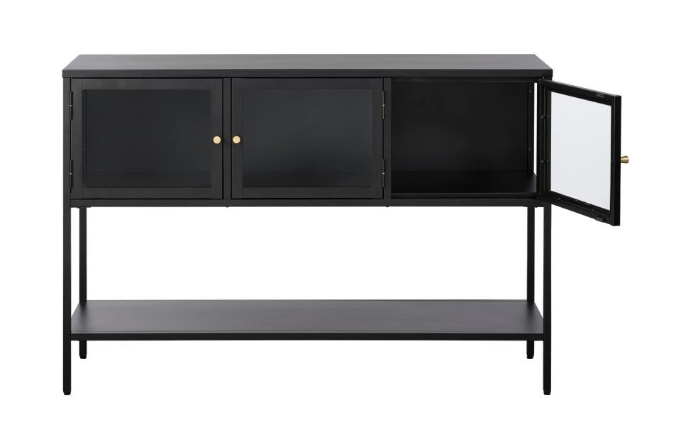 Carmel skænk i sort metal - 132 cm med tre glaslåger