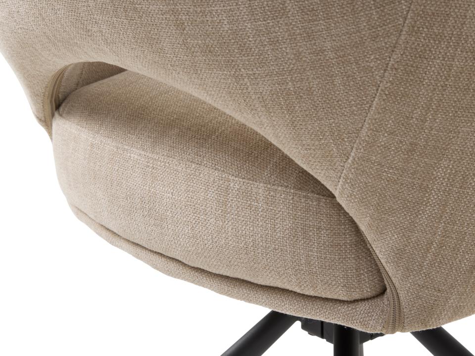 TOP har en let chenille-berøring og er et klassisk, men alligevel moderne stof med en visuelt "antik" effekt - simpelt, robust og elegant. Med en siddehøjde på 51 cm og siddedybde på 52 cm giver stolen god komfort til afslapning. Ryggen er 51 cm høj. Armlænene sidder i en højde på 64 cm. Basen er lavet af sort metal og stolen kan dreje 360 grader. Med en Martindale-værdi på over 25.000 er stoffet slidstærkt.