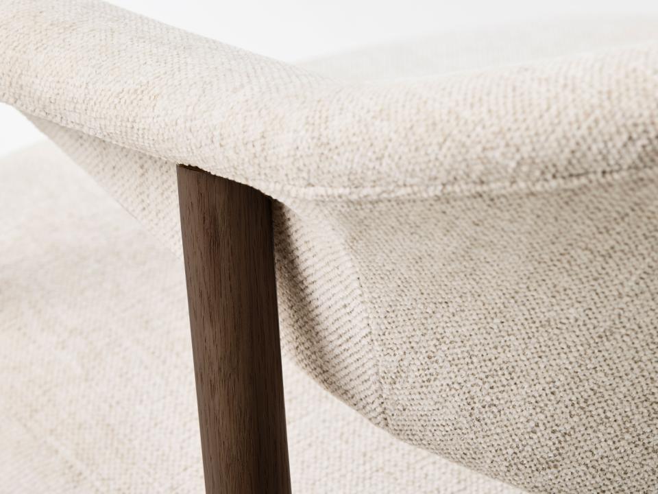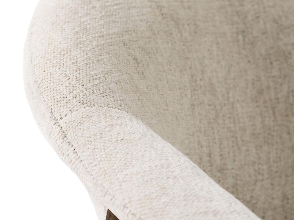 Komfortabel spisebordsstol med armlæn og HARMONY-stof. Sand er varm og neutral. Ekstra slidstærk med Martindale-værdi på over 40.000. FSC-certificeringen sikrer ansvarligt skovbrug.