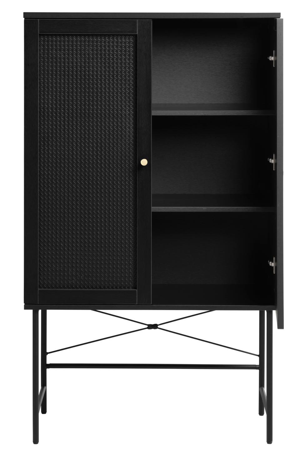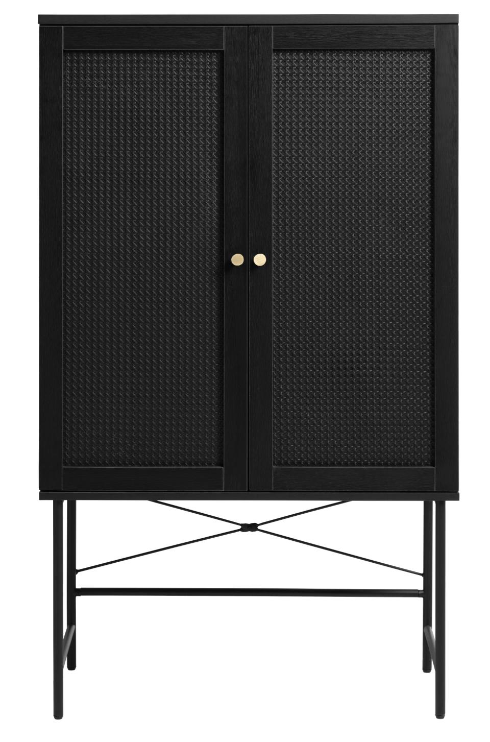 Højt Opbevaringsskab i Sort med Rattan-Døre - Pensacola - højde 135 cm!