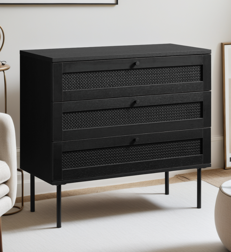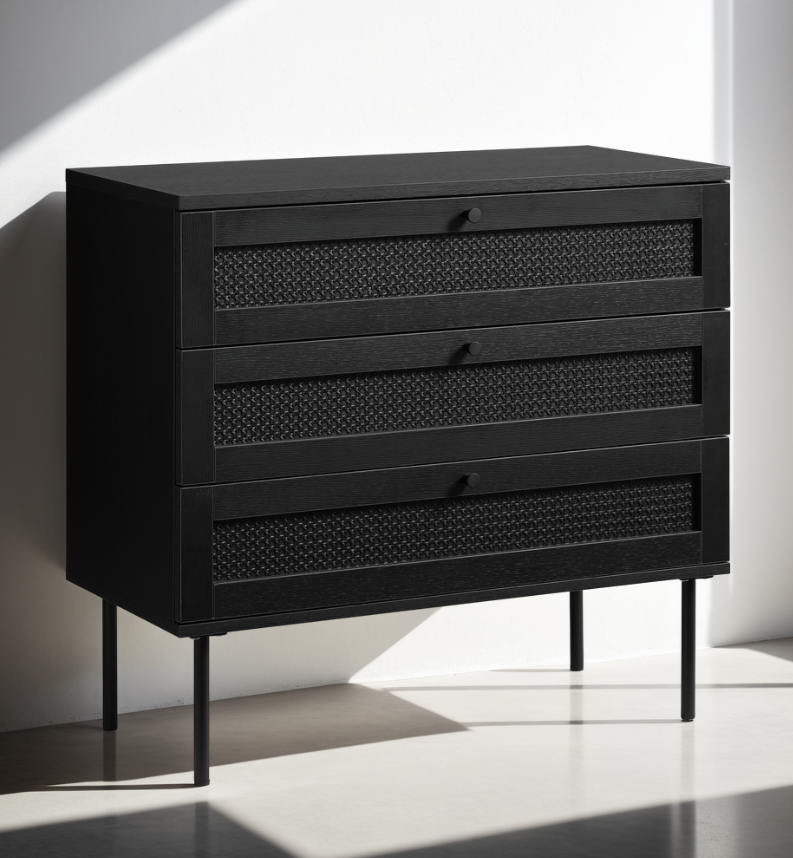Moderne Sort Kommode med Rattan-Detaljer - Pensacola 80 cm