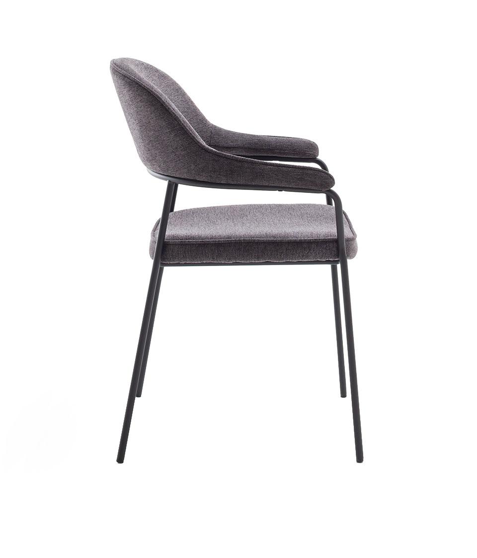 Elegant spisebordsstol med armlæn og BREGO-stof. Mørkegrå er neutral og moderne. Exceptionel modstandsdygtighed over for slid og pilling. FSC-certificeringen sikrer ansvarligt skovbrug.