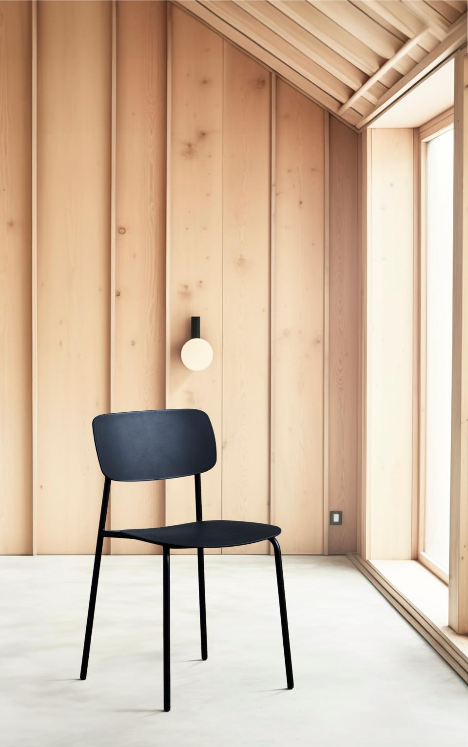 Moderne spisebordsstol i sort - klassisk og tidløs. Kompakt design passer til de fleste spiseborde. Sorte metalben skaber et harmonisk udtryk.