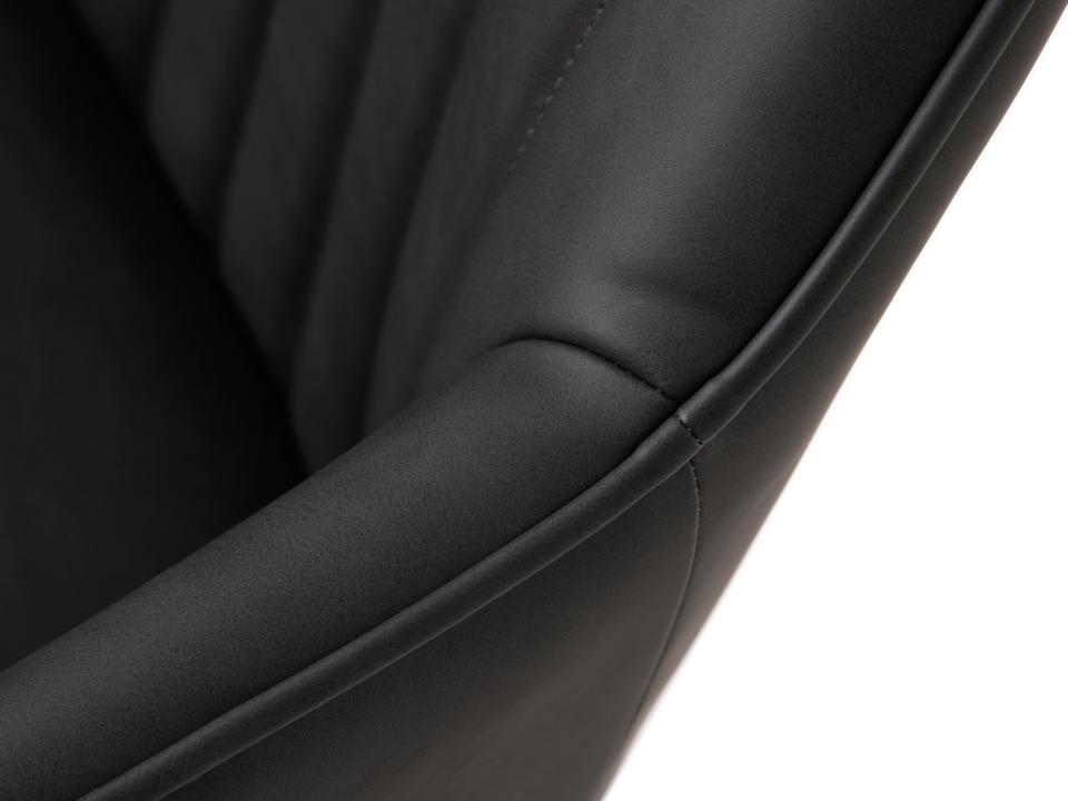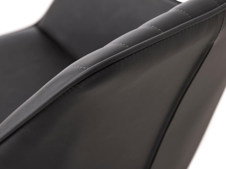 Nolan spisebordsstol giver dig luksus-looket af læder uden at gå på kompromis med dyrevelfærd. PU-materialet føles blødt og behageligt, ser ud som ægte læder, og har den karakteristiske slidte, industrielle finish, der giver stolen personlighed. Tæt på kan du se den diskrete struktur i materialet - en detalje, der gør det svært at skelne fra ægte læder.