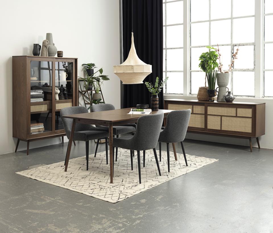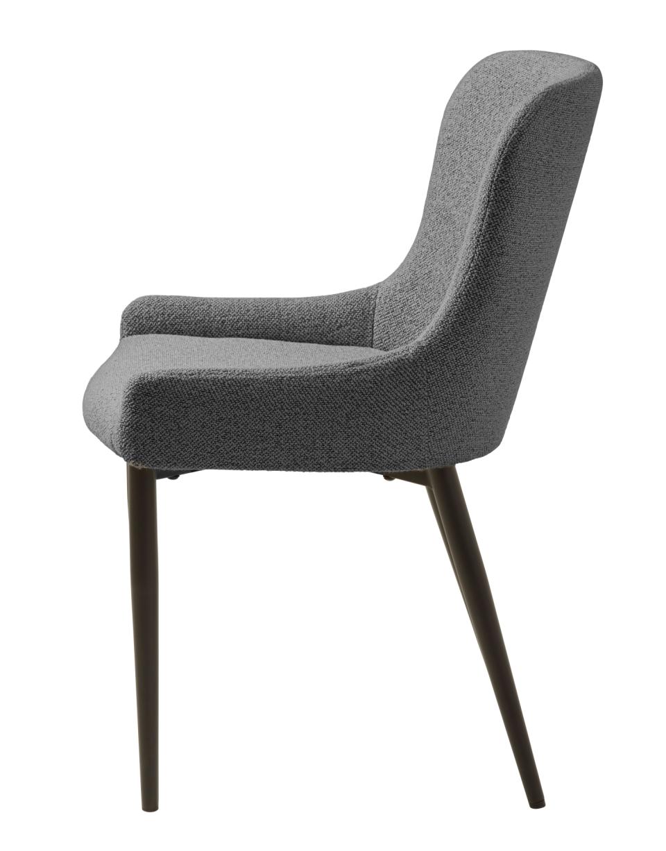 Mørkegrå er den perfekte neutral, der passer til alt og aldrig går af mode. Bouclé-stoffet er trendy og bringer hygge og moderne stil sammen. Med armlæn får du ekstra komfort til lange middage. FSC-certificeringen sikrer ansvarligt skovbrug.