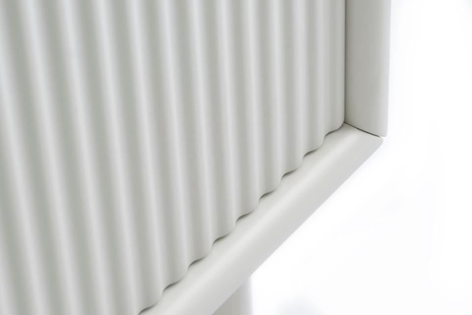 Greige-farven er en blød blanding af grå og beige, der passer til både lyse og mørke indretninger. Metalbenene i matchende greige løfter skabet 18 cm fra gulvet og gør det nemt at holde rent under.
