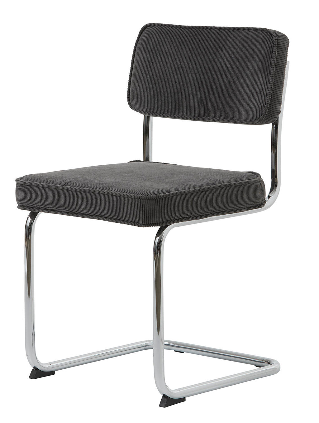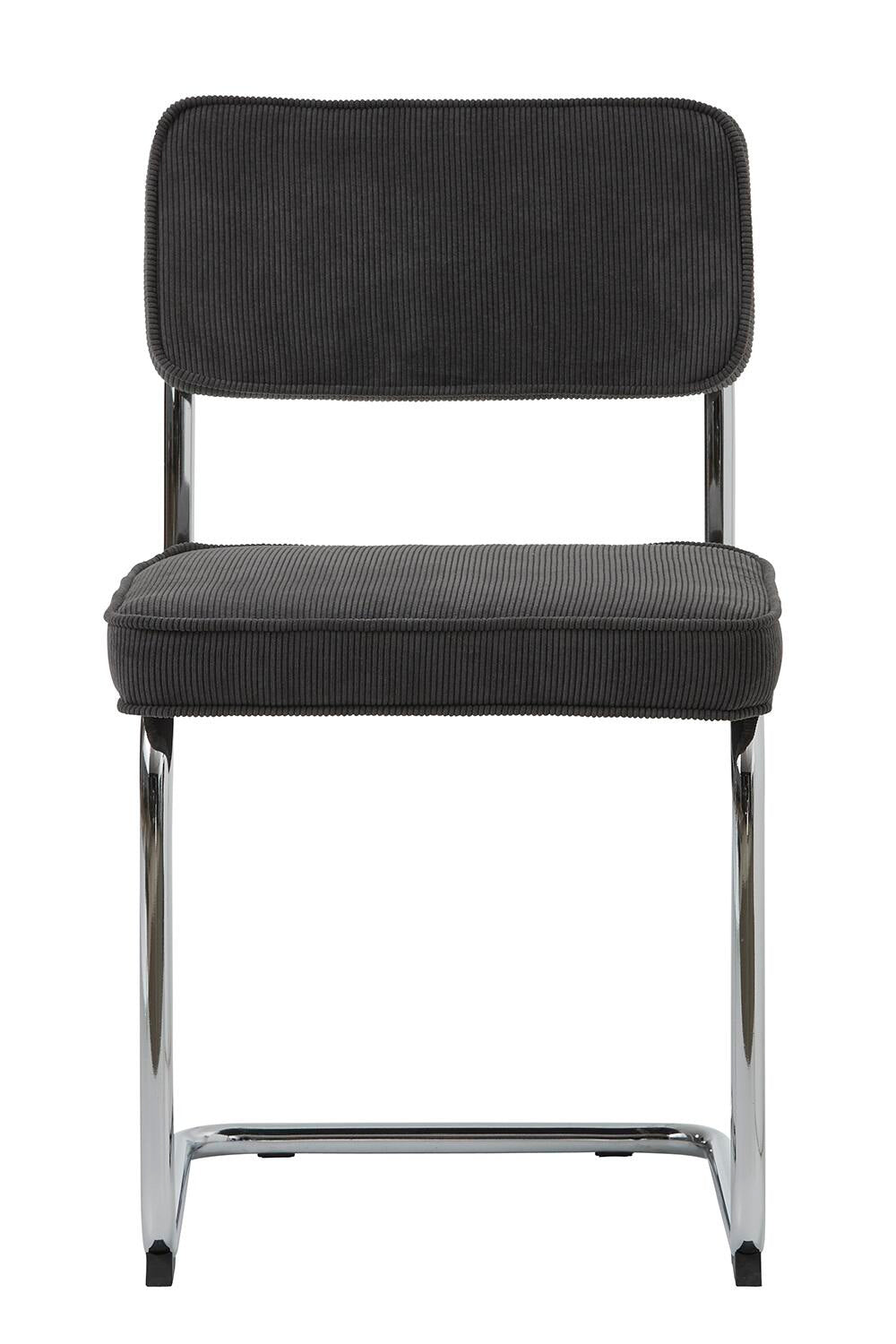 Rupert spisebordsstole i grå fløjl er det perfekte valg til dig, der ønsker en tidløs og alsidig løsning. Robin corduroy-stoffet minder om 70'erne med sine karakteristiske smalle striber, men har et moderne udtryk, der passer perfekt ind i nutidens hjem. Den grå farve er neutral og passer til det meste, mens de blanke kromben tilføjer et elegant touch. Sættet af 4 stole er perfekt til spisebordet, hvor de tilføjer både komfort og stil.