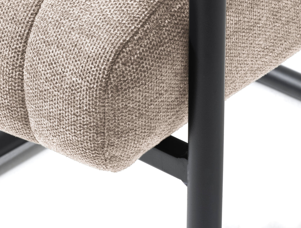 Med Trout lænestole i sand får du to stole, der gør spisebordet endnu mere indbydende. Armlænene giver ekstra komfort, så dine gæster kan sidde afslappet gennem hele måltidet. Den sandede farve skaber en varm atmosfære, og Brego-stoffet føles lækkert og holder sig pænt i mange år. De sorte metalben giver et moderne touch. Perfekt til endebordspladserne ved spisebordet eller som ekstra stole i stuen.