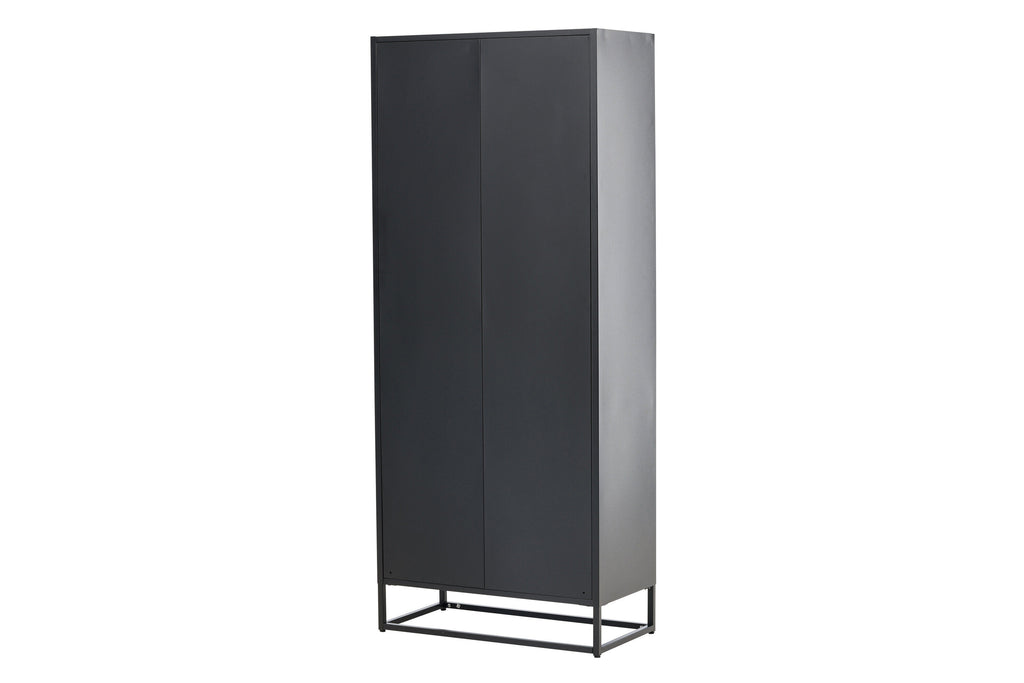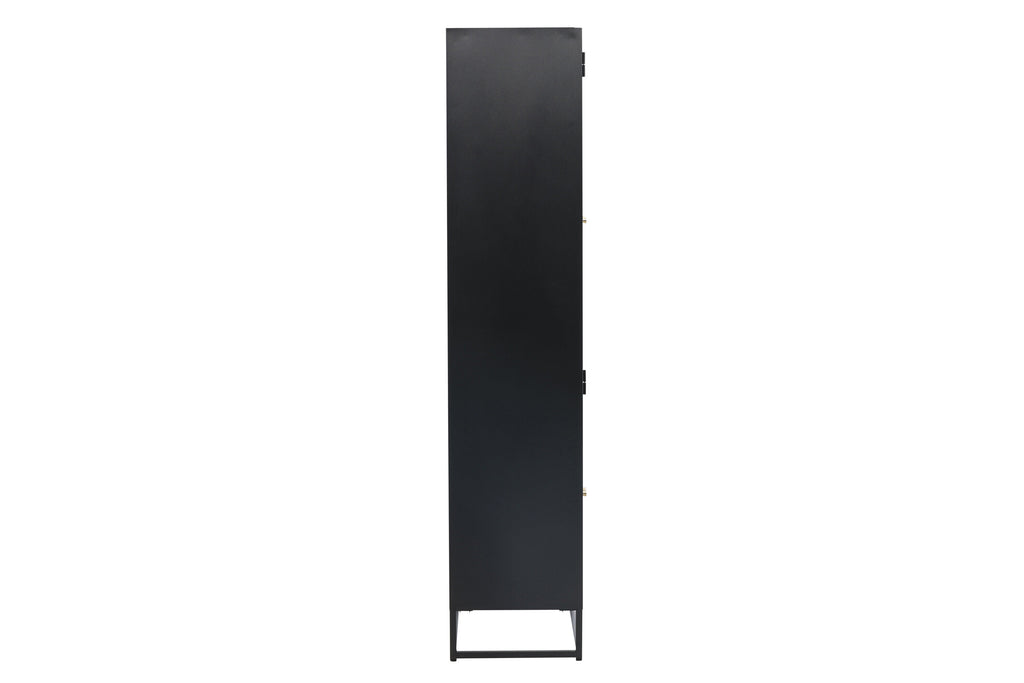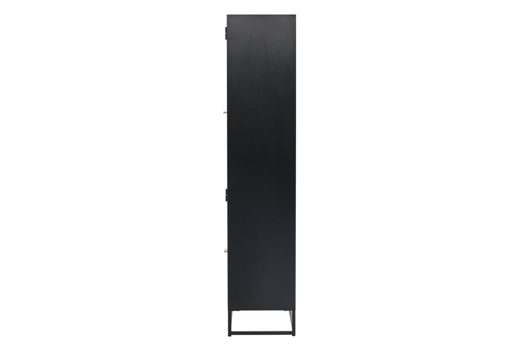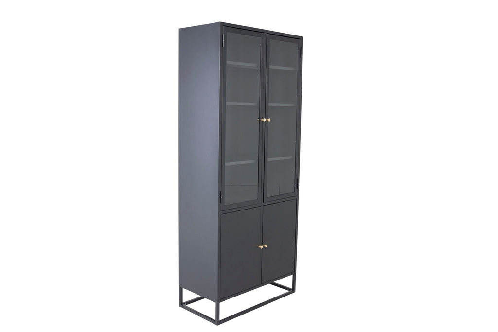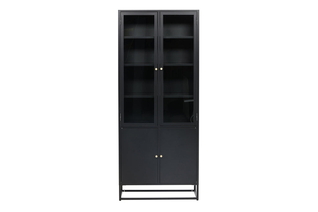 højt skab i stål, sort metalskab, skab med glasdøre, Venture Home Piring, opbevaringsskab, vitrineskab, moderne skab, dansk webshop, hurtig levering, prisgaranti, afhentning i Herning, eget lager i Herning