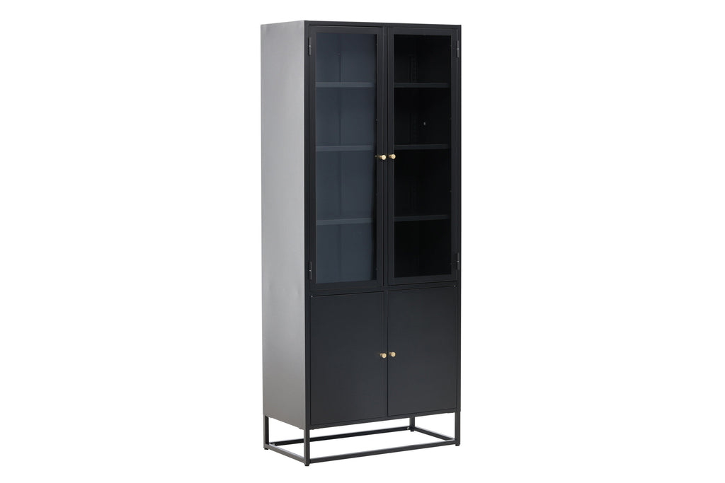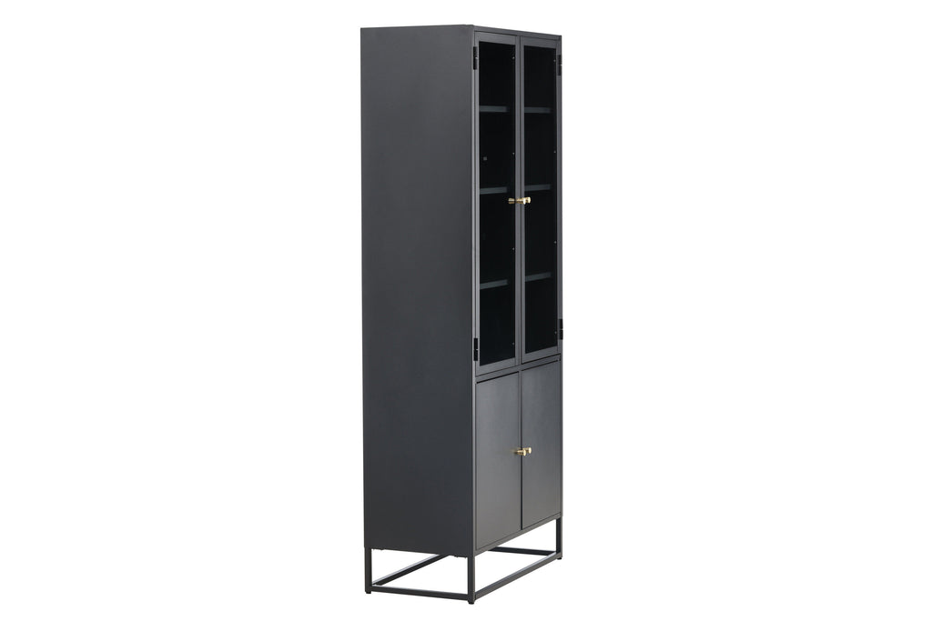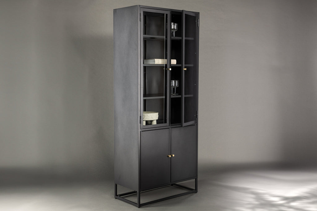 Højt vitrineskab i sort stål med glas- og fyldningsdøre – Venture Home Piring