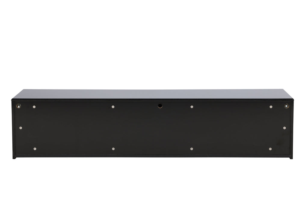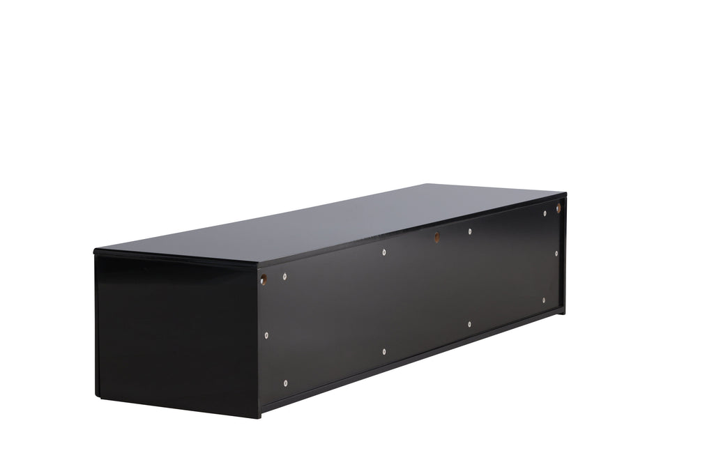 TV-bord med skuffer, sort TV-bænk, blank finish TV-møbel, Venture Home Fristad, mediemøbel med opbevaring, FSC MDF TV-bord, moderne TV-bord, TV-bord til stue, dansk webshop, hurtig levering, prisgaranti, afhentning i Herning, eget lager i Herning