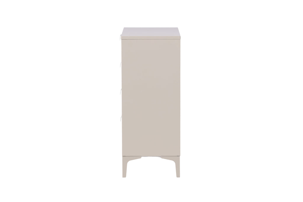 byrå i stål, beige kommode, Venture Home Piring, opbevaringsmøbel, 4 skuffer, moderne byrå, stålmøbel, dansk webshop, hurtig levering, prisgaranti, afhentning i Herning, eget lager i Herning