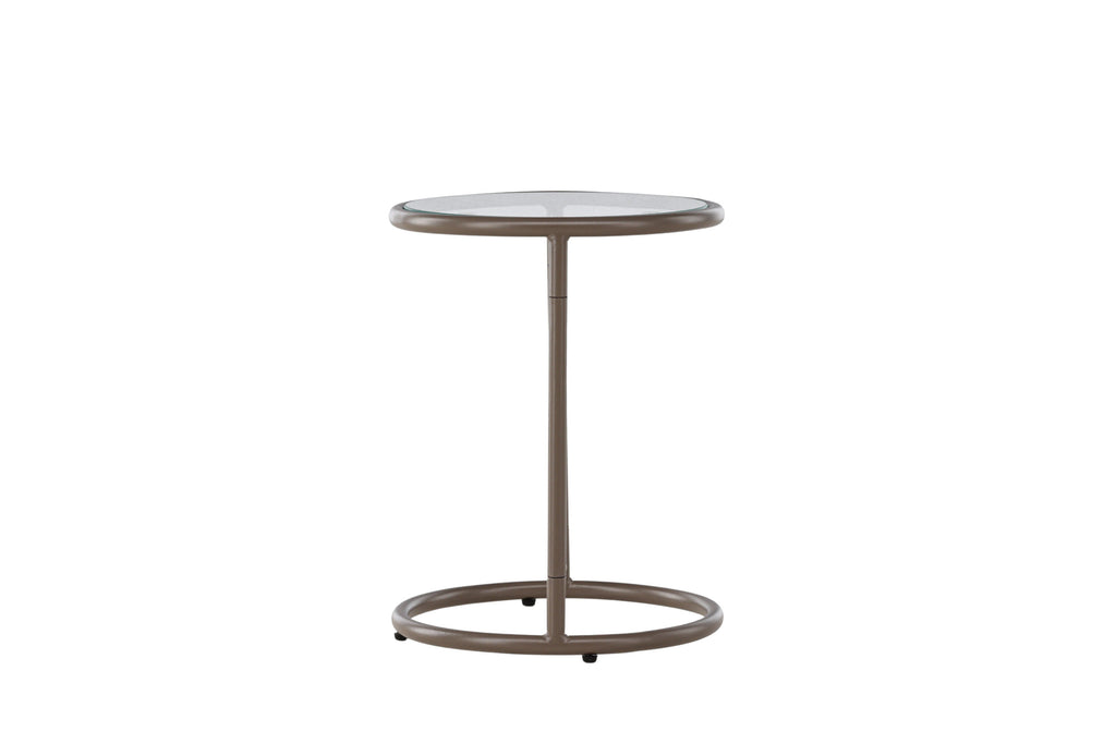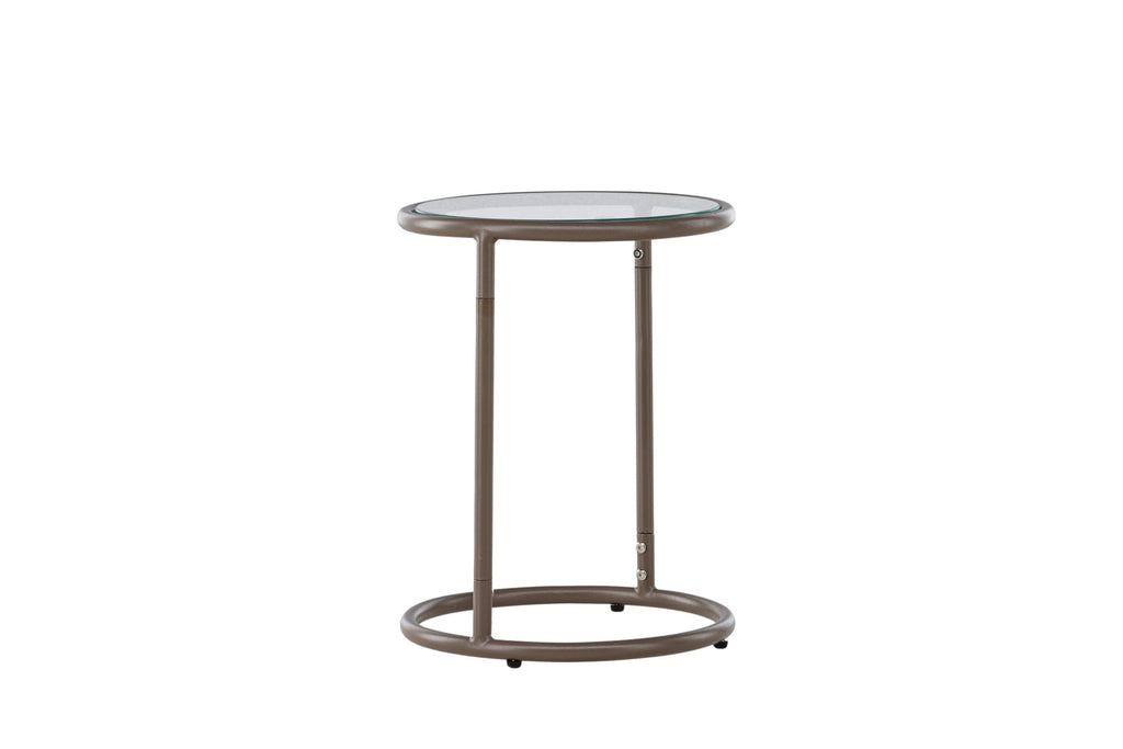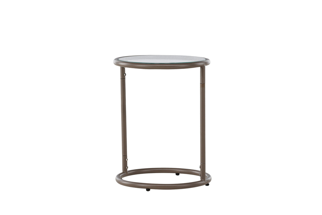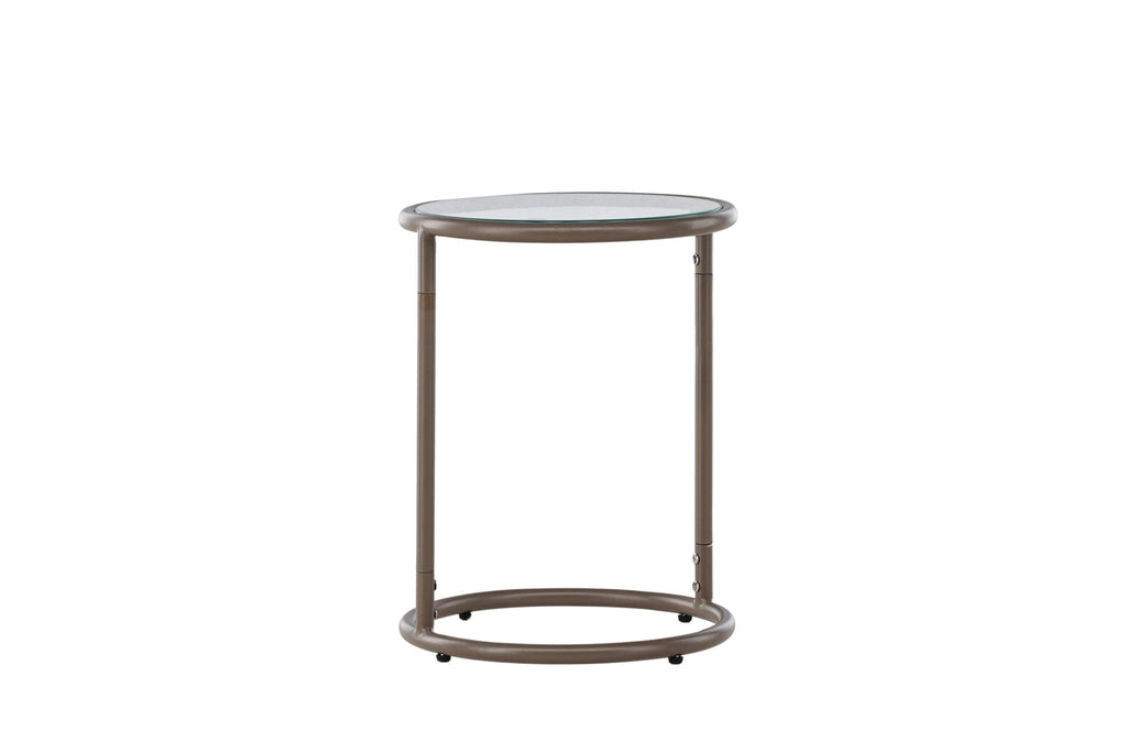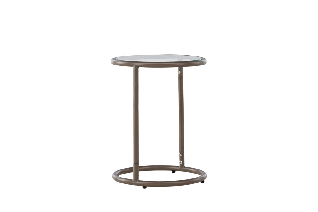 Rundt sidebord i brun stål og glas – Venture Home Stavanger!