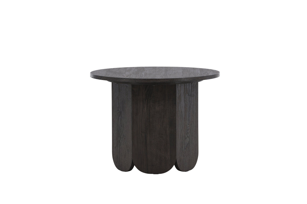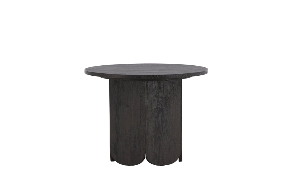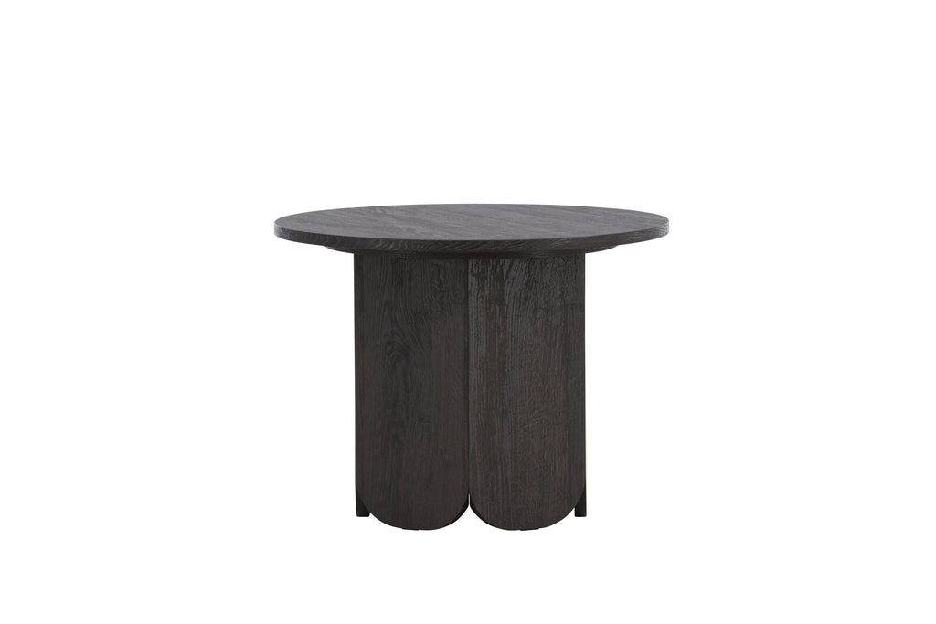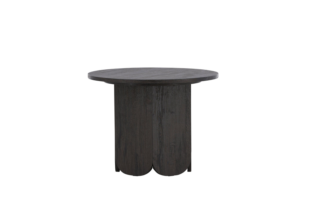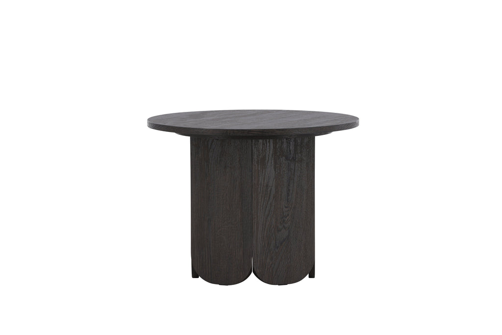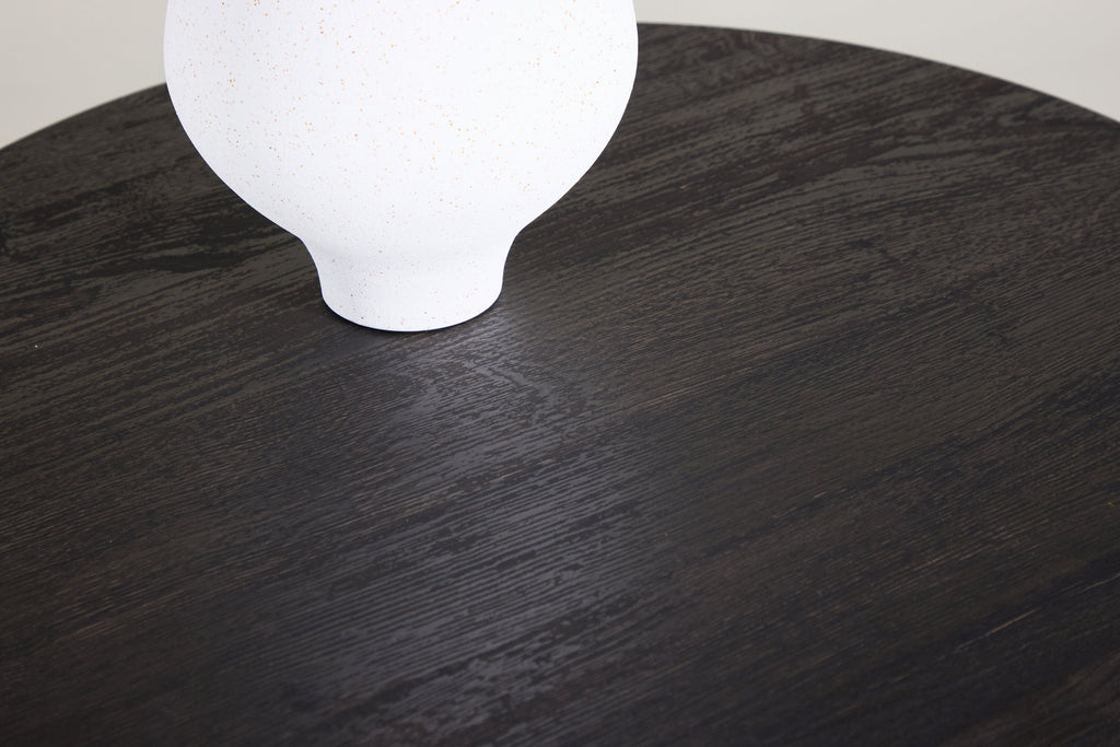 Sofabordet Tekla er et stilrent og funktionelt møbel, der kombinerer bløde former med en tydelig karakter. Bordet har en rund bordplade i en dyb sort nuance med smuk laminatoverflade i træstruktur, som tilfører elegance og ro til indretningen. Tekla er en del af en serie borde i forskellige størrelser, hvilket gør det nemt at tilpasse efter rummets behov.