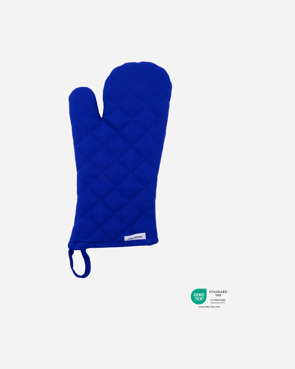 Fremstillet af quiltet bomuld i en tyk kvalitet, så du opnår et godt og behageligt greb, når du tilbereder og håndterer din mad. Det, der virkelig fuldender designet, er den livlige blå farve, der frisker din køkkenindretning op. Når du er færdig med at lave mad, kan du hænge handsken på væggen sammen med dine viskestykker.