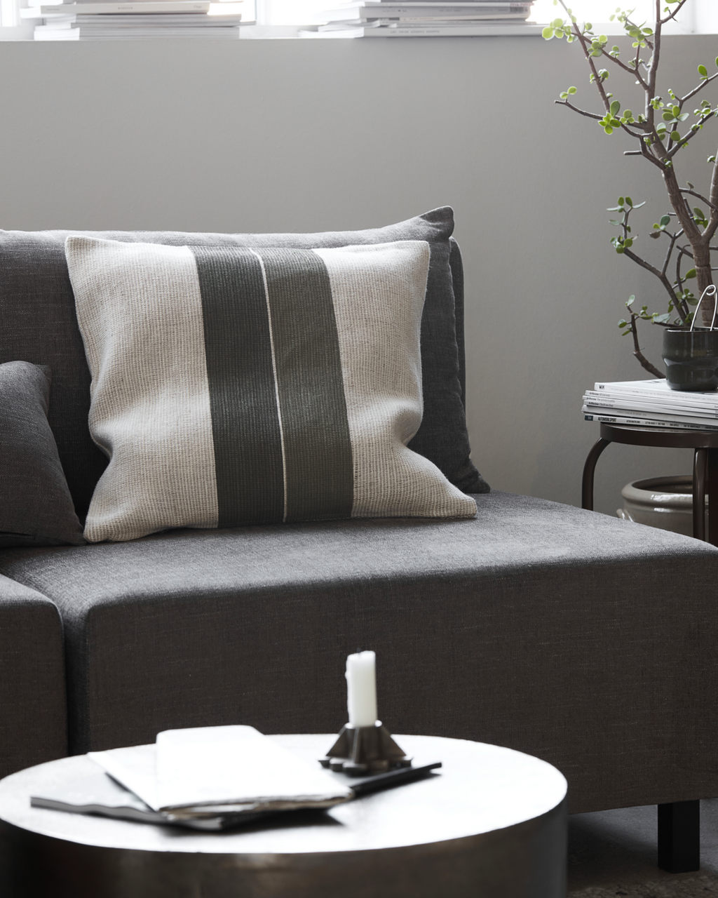 Dette pudebetræk er lavet af bomuld og jute og er et tidløst og stilfuldt valg til dit hjem