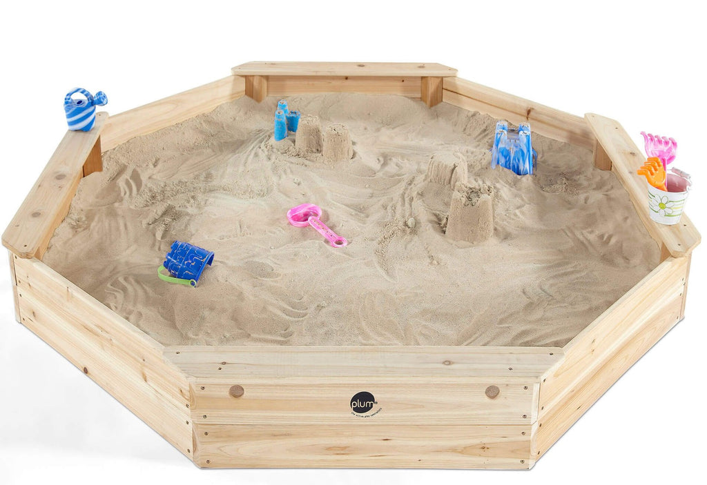 Giv børnene masser af plads til leg, fantasi og udendørs aktivitet med denne rummelige og robuste sandkasse fra Plum®. Med sin ottekantede form og FSC®-certificerede træ er den både sikker, bæredygtig og stilfuld i haven.