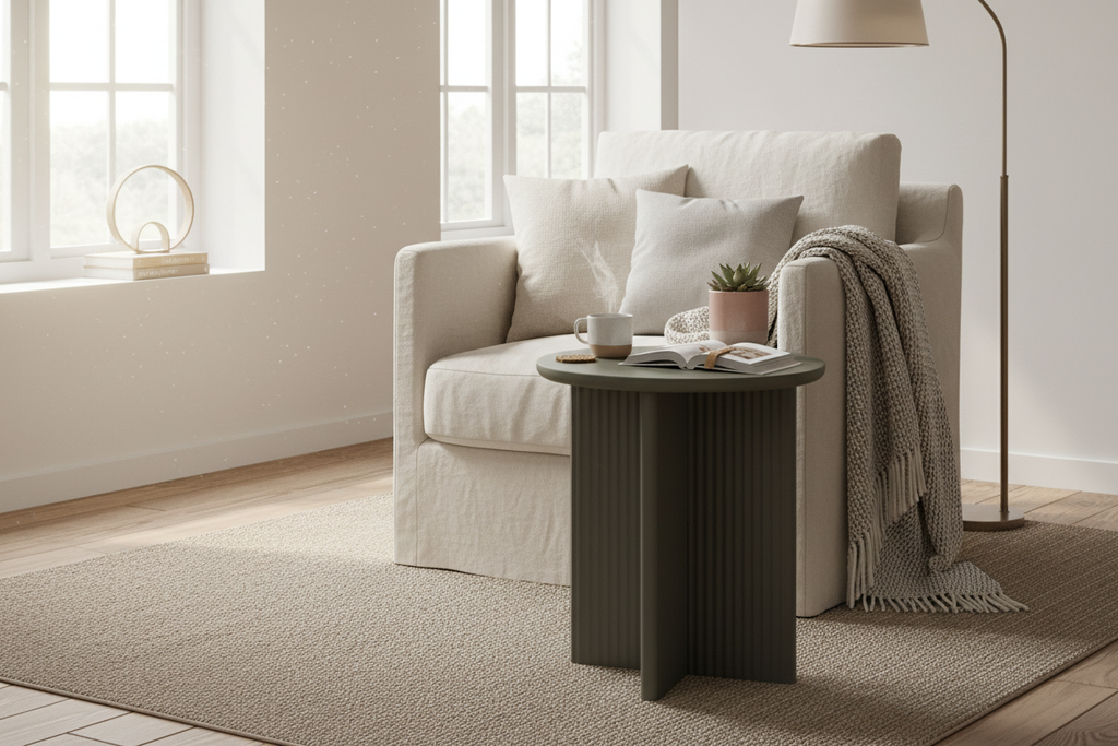 Olivengrå er farven, der forbinder natur og moderne design. Denne dæmpede grøn-grå nuance har en rolig, jordnær karakter, der passer perfekt ind i både skandinaviske og boheme hjem. Palma sidebord i olivengrå bliver et diskret, men smukt element i rummet - et bord der ikke råber på opmærksomhed, men som skaber harmoni.