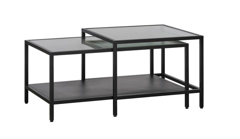 Bordene er fremstillet i robust metal med sort finish og elegante bordplader i riflet hærdet glas. Det riflet glas skaber et spændende visuelt udtryk og reflekterer lyset på en smuk måde. Den solide konstruktion sikrer lang holdbarhed.