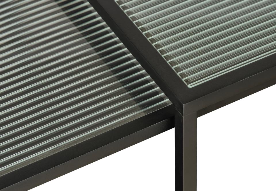 Bronco sofabord sættet med riflet glas og metalstel er et selvstændigt, trendy møbel, der med garanti vil give dit interiør et løft, samtidig med at det passer perfekt sammen med alle andre farver, materialer og stilarter, du allerede har i hjemmet.