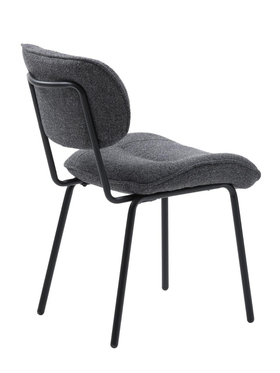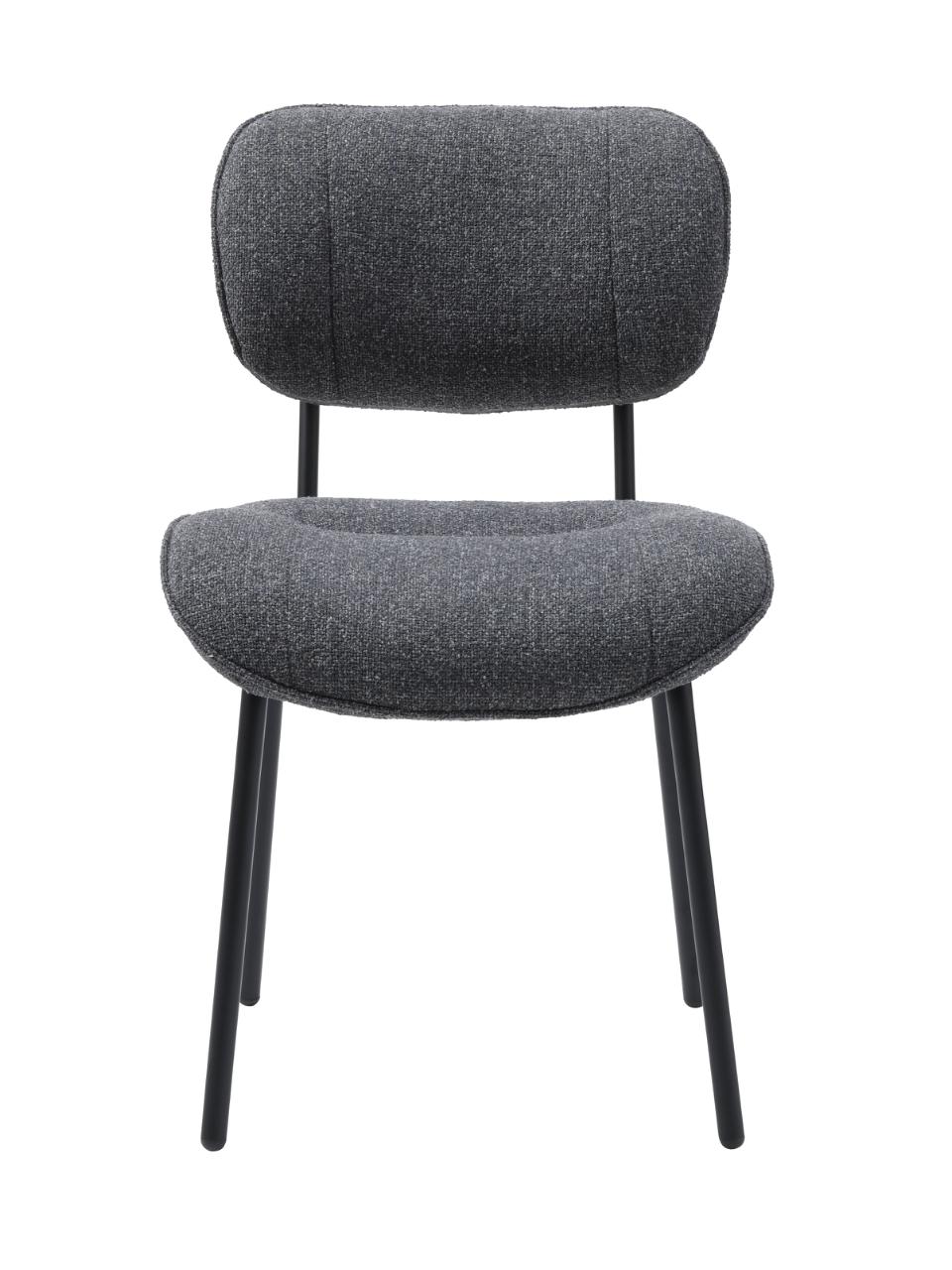 Få to elegante Buffalo stole i mørkegrå melange. Den mørkegrå polstring med bouclé-effekt skaber en sofistikeret og tidløs atmosfære, mens de sorte pulverlakerede stålben tilfører moderne charme og robust stabilitet. Perfekt til det moderne spisebord.