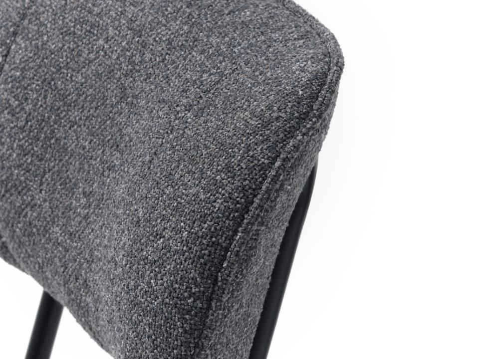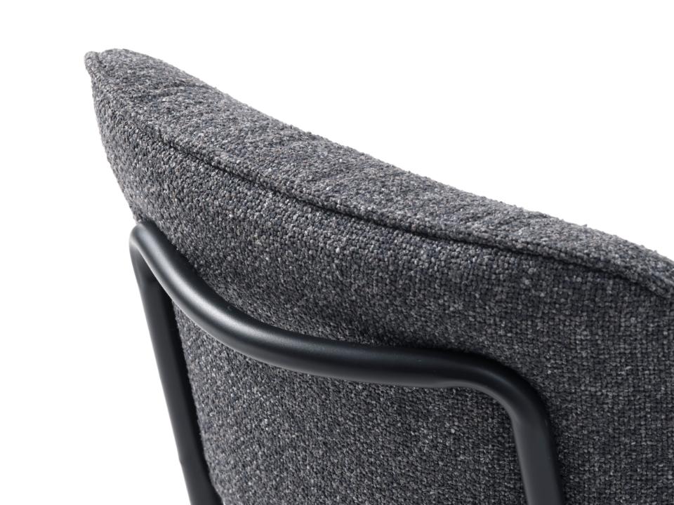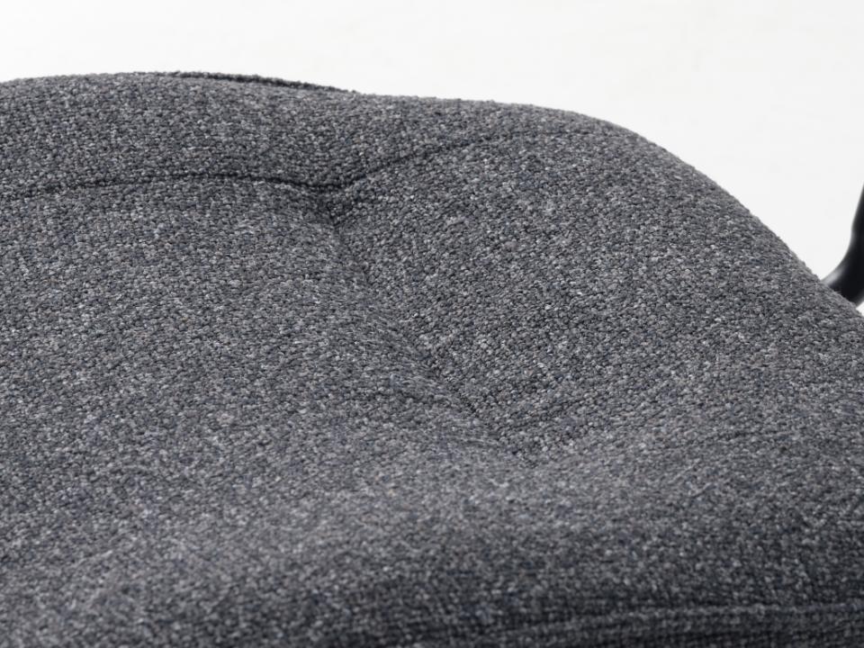 Den mørkegrå melange polstring i Hevre-stof kombinerer visuel tekstur med exceptionel holdbarhed. Med over 60.000 Martindale og lysægthed niveau 5 holder stolene til intensiv daglig brug og bevarer deres smukke farve, selv ved direkte sollys. Den bløde bouclé-overflade giver en luksuriøs komfort.