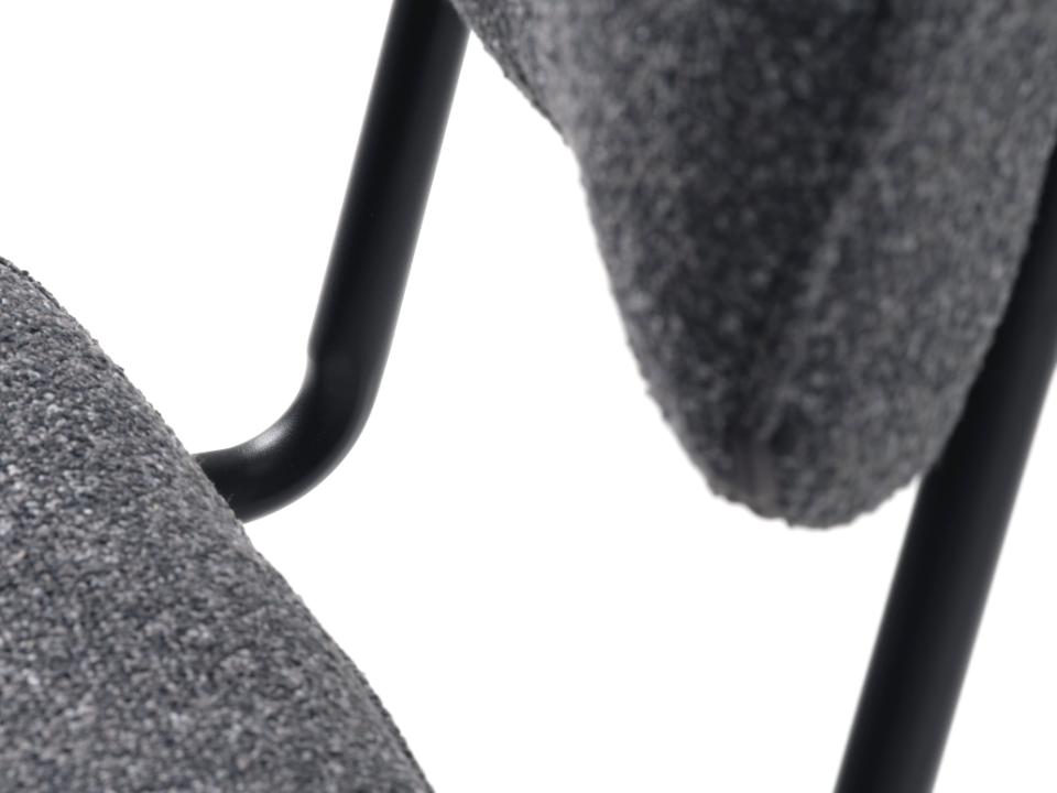 De sorte pulverlakerede stålben giver stolene en moderne, industriel karakter og sikrer samtidig maksimal stabilitet. Det slanke design uden armlæn gør stolene nemme at skubbe ind under bordet og skaber et luftigt udtryk.