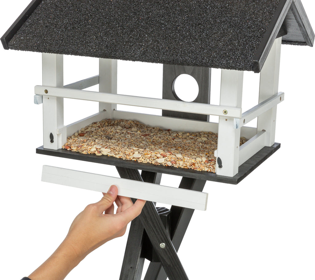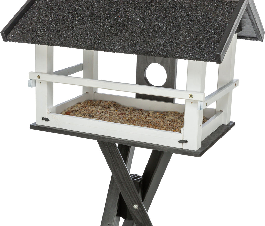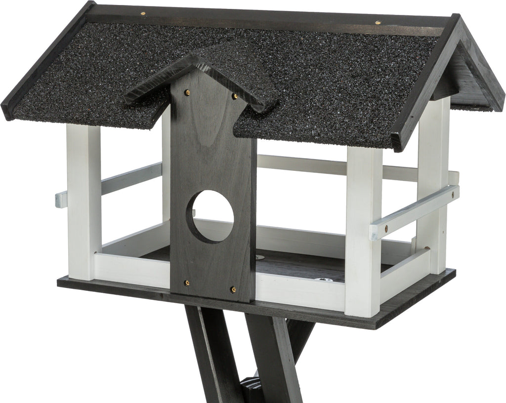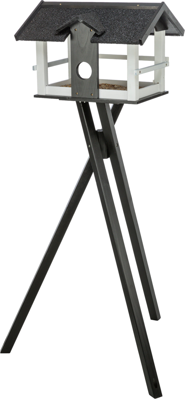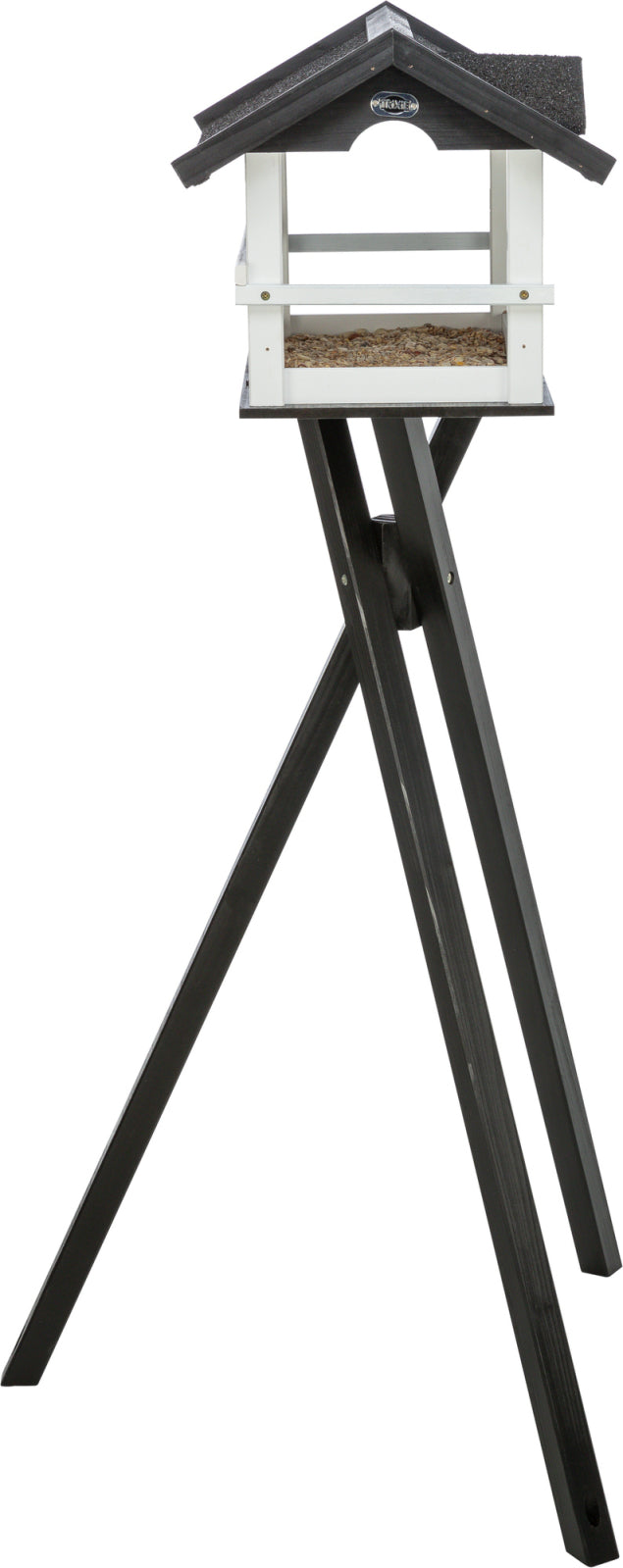 Trixie - Natura Fuglefoderhus med Stativ, 48x33x37, H:133 cm - Sort/Hvid Fyrretræ