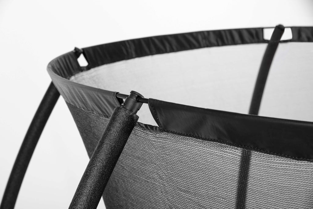 Sikkerhedsnettet er tæt fastgjort direkte til springdugen og holder fødderne væk fra fjedrene. Netstolperne er beskyttet af et tykt lag skum, hvilket sikrer maksimal sikkerhed under leg.