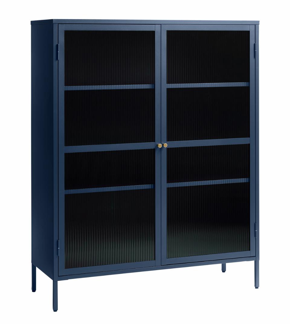 Bronco vitrineskab 140 cm - moderne glasskab i blå metal