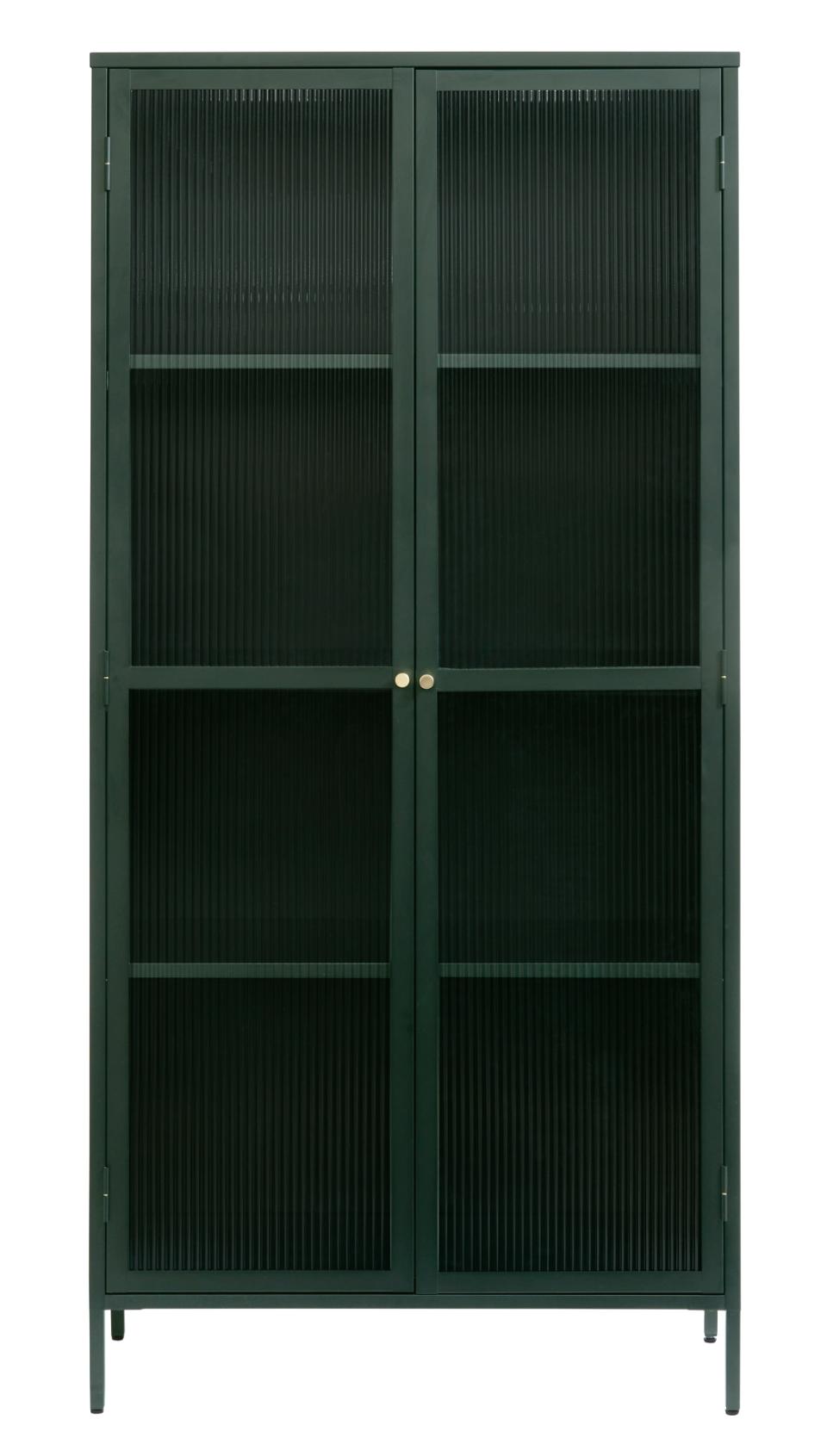 Bronco vitrineskab 190 cm - moderne glasskab i grøn metal!
